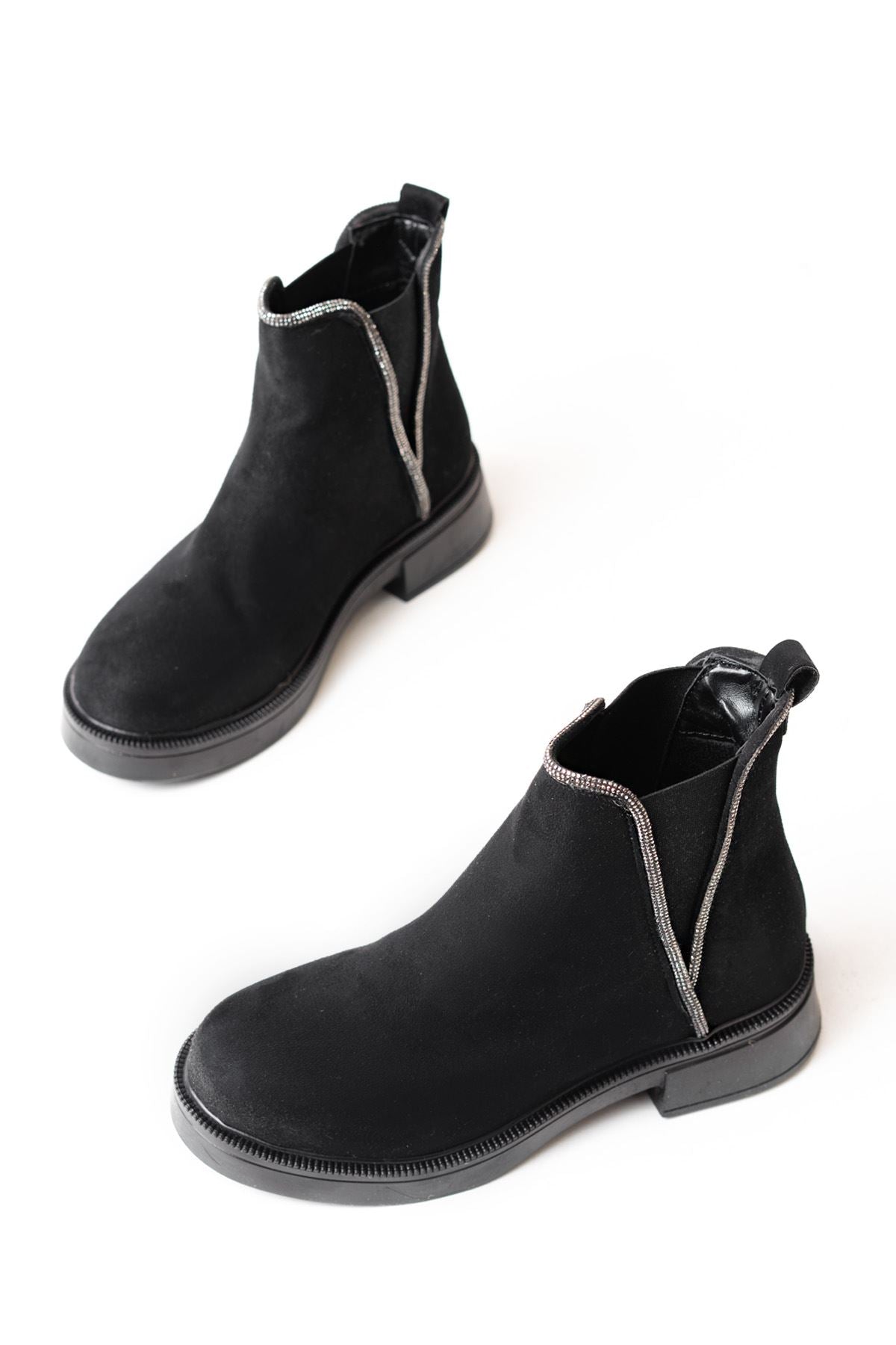 Ayakkabı Aşkı Siyah Süet Taş Aksesuarlı Lastikli Günlük Kadın Bot