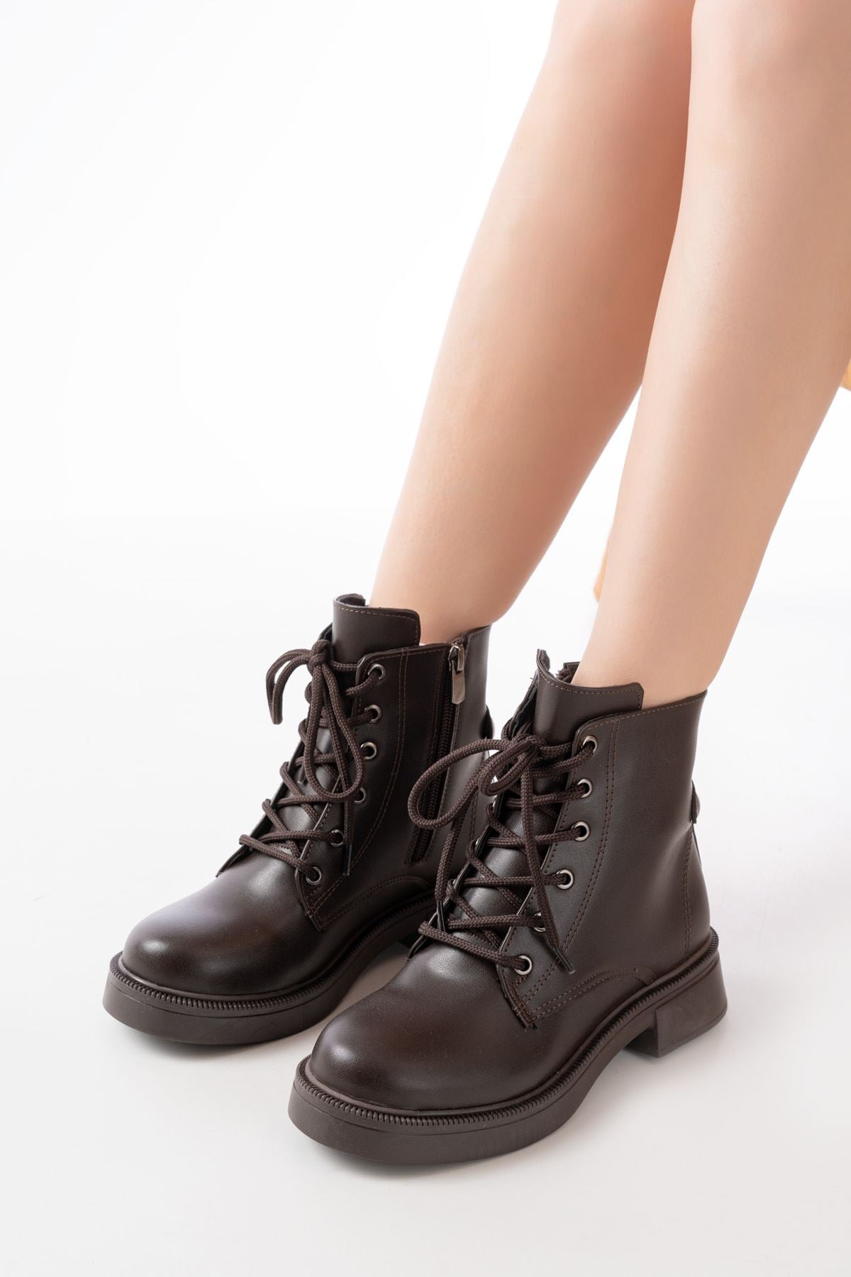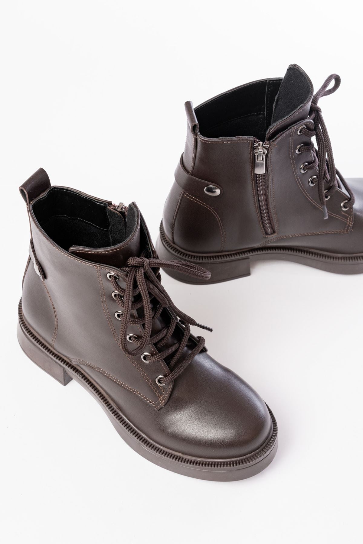 Ayakkabı Aşkı Kahve Cilt Bağcıklı Fermuarlı Günlük Kadın Bot