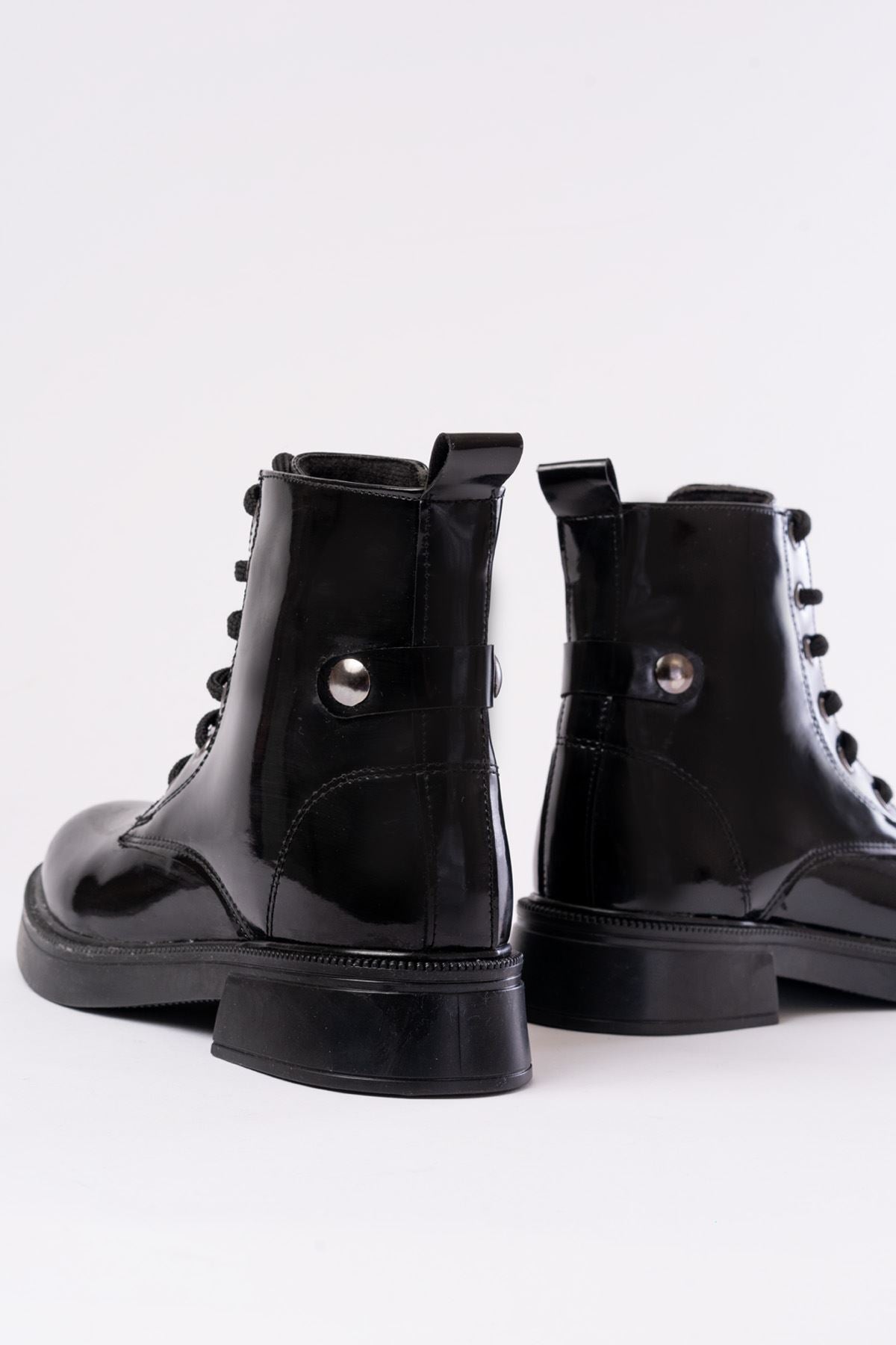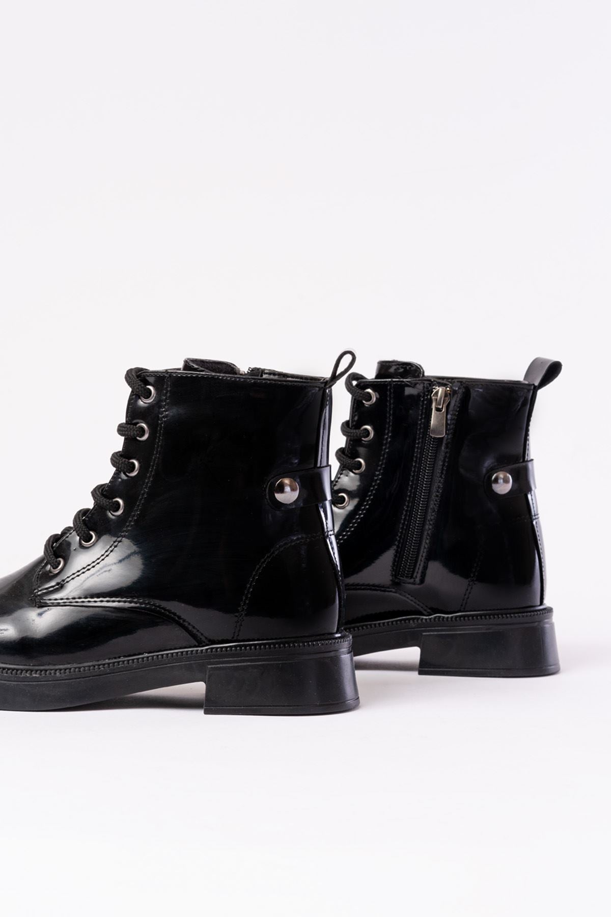 Ayakkabı Aşkı Siyah Rugan Bağcıklı Fermuarlı Günlük Kadın Bot