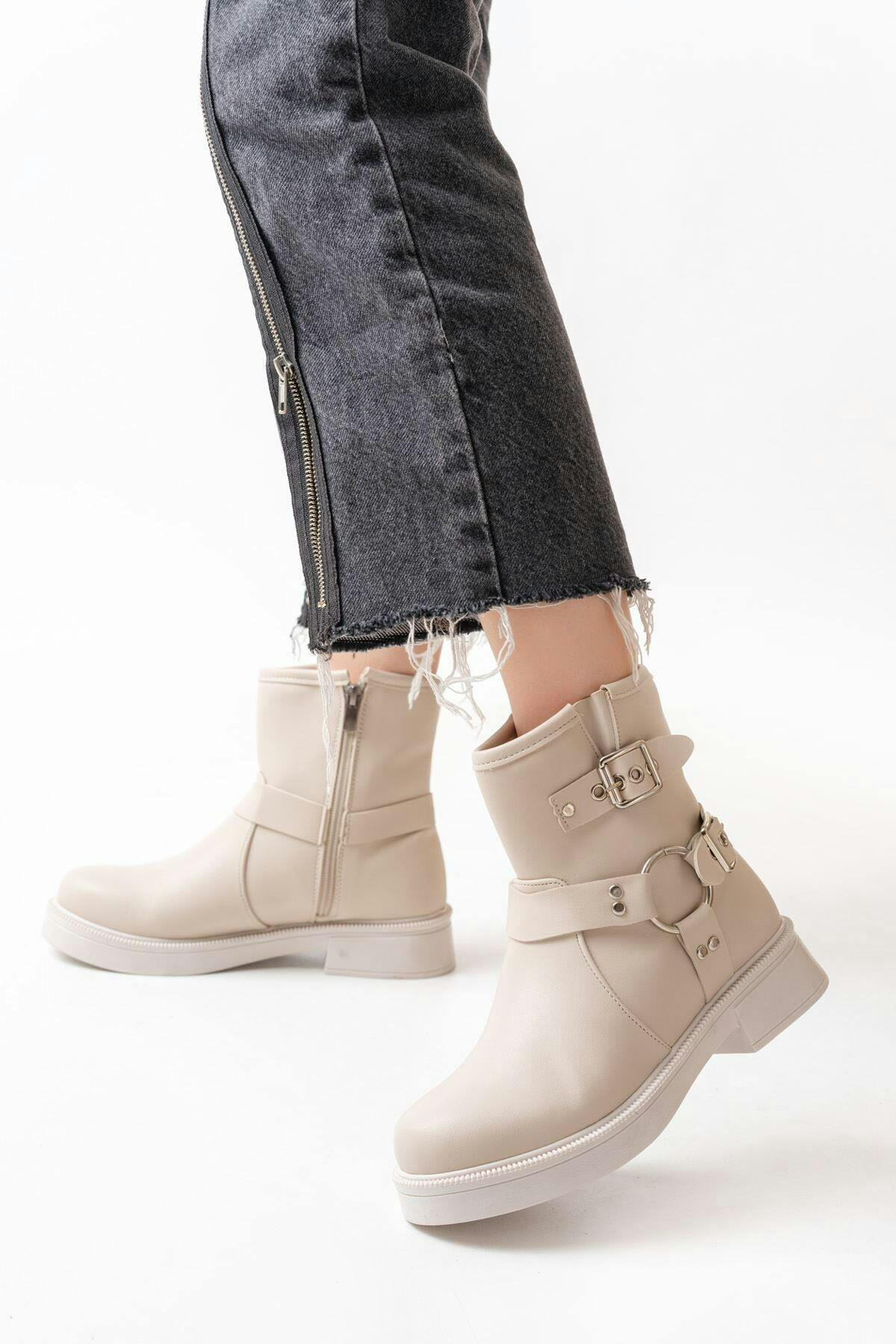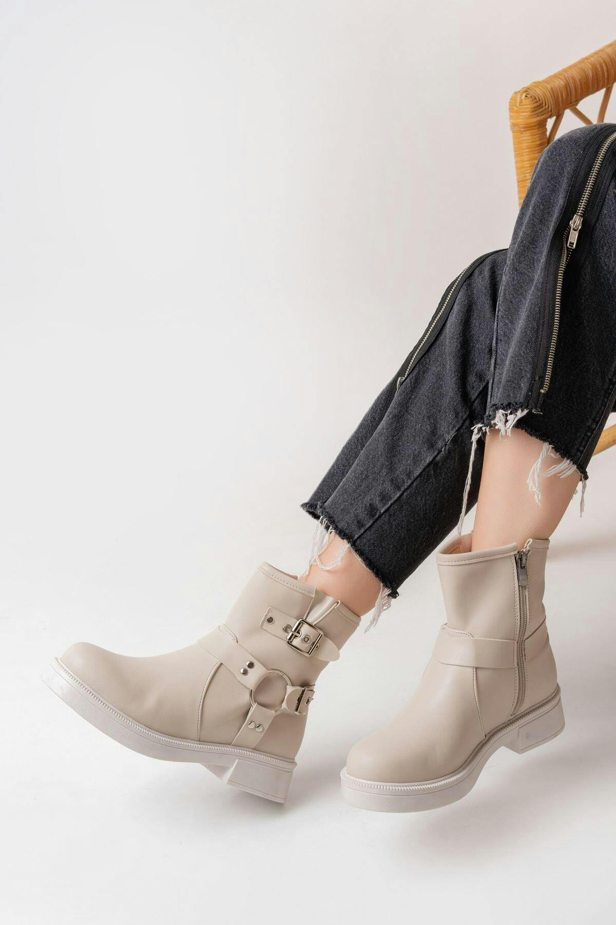 Ayakkabı Aşkı Bej Toka Aksesuarlı Fermuarlı Günlük Kadın Bot