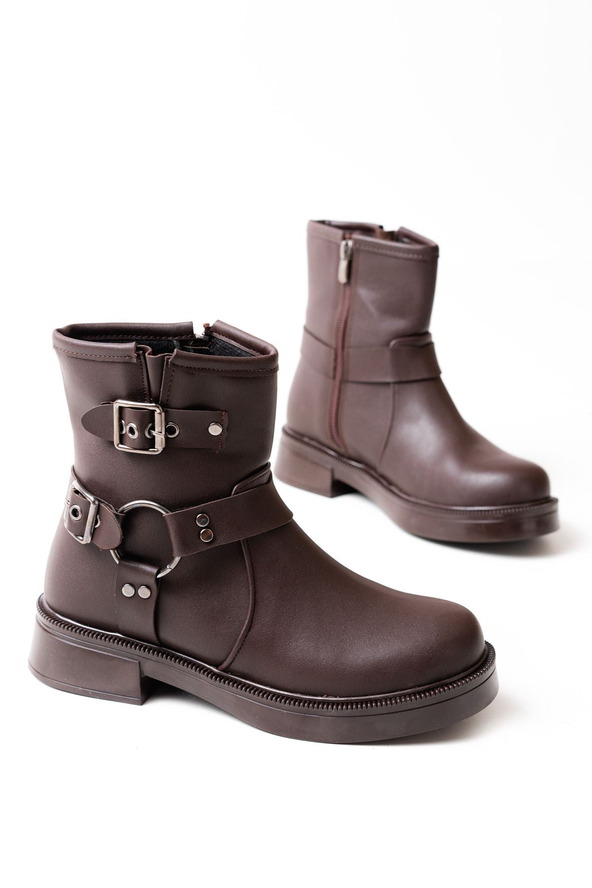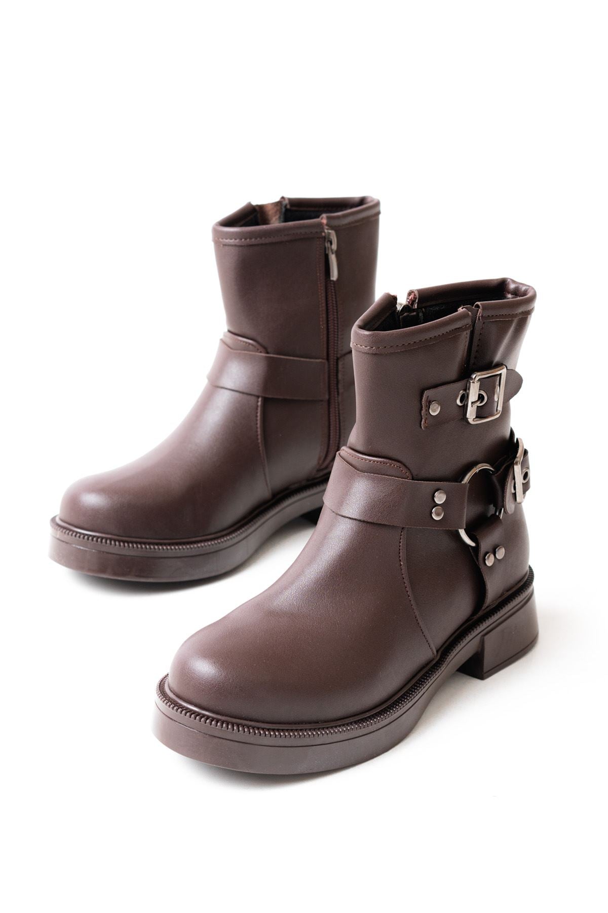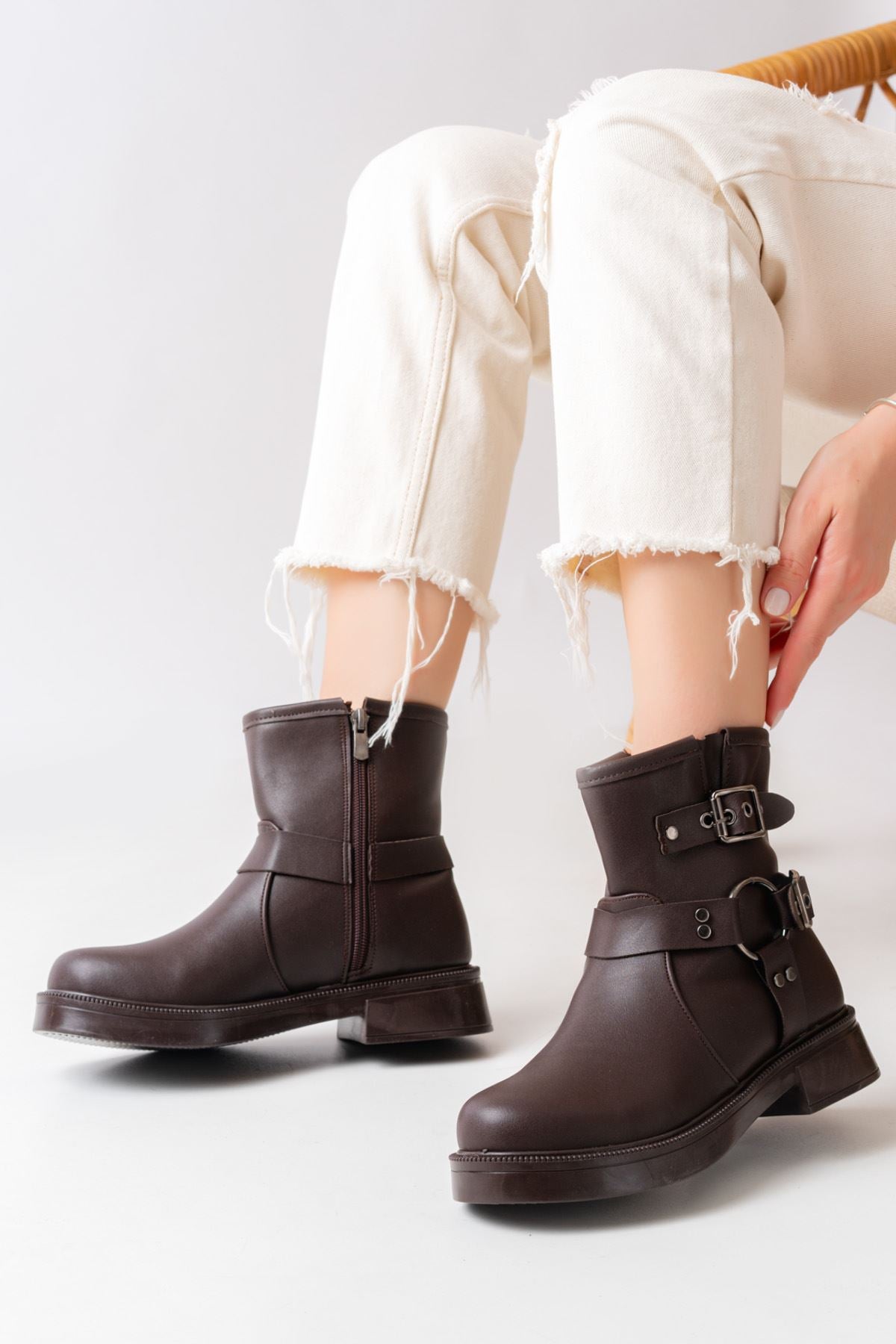 Ayakkabı Aşkı Kahverengi Toka Aksesuarlı Fermuarlı Günlük Kadın Bot