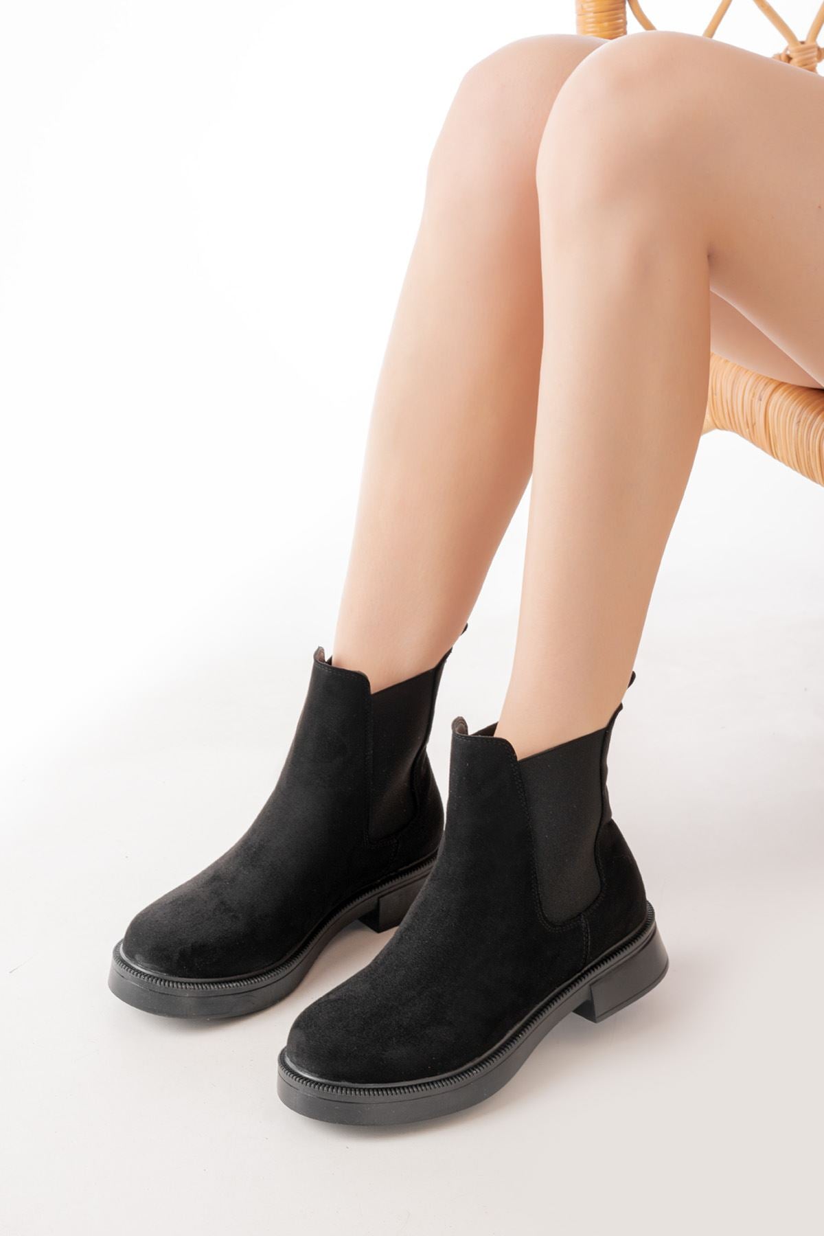 Ayakkabı Aşkı Siyah Süet Lastikli Günlük Kadın Bot
