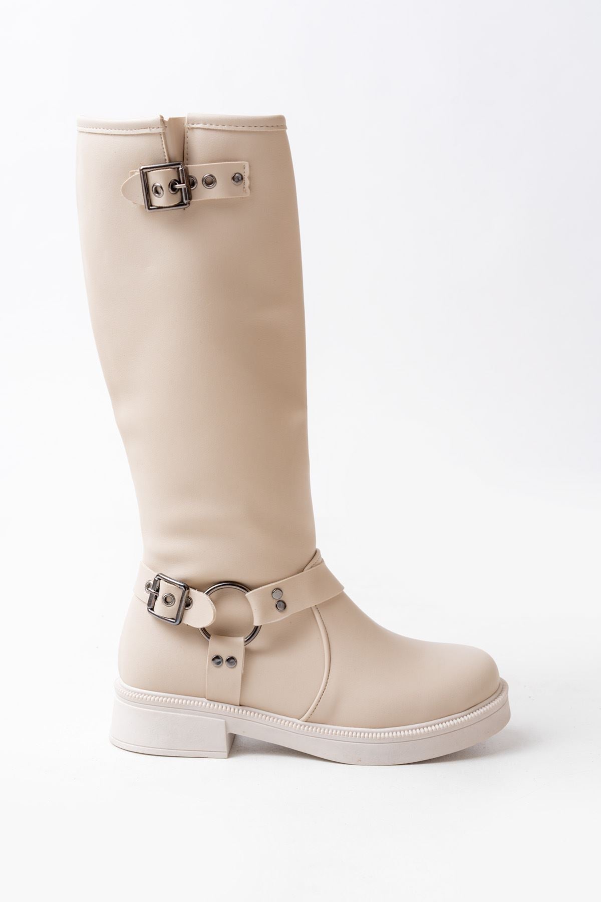 Ayakkabı Aşkı Bej Toka Aksesuarlı Fermuarlı Günlük Kadın Çizme