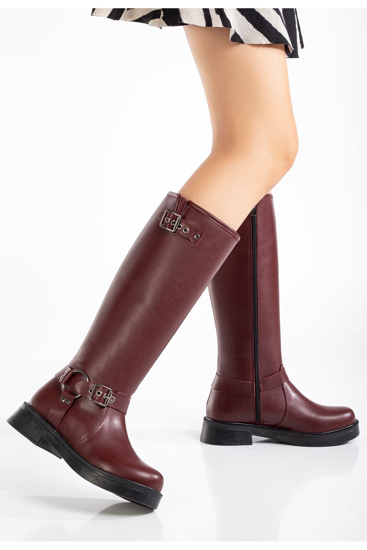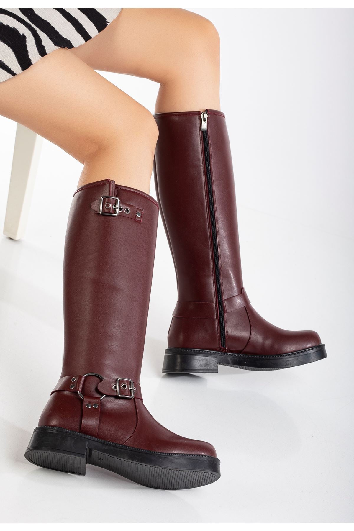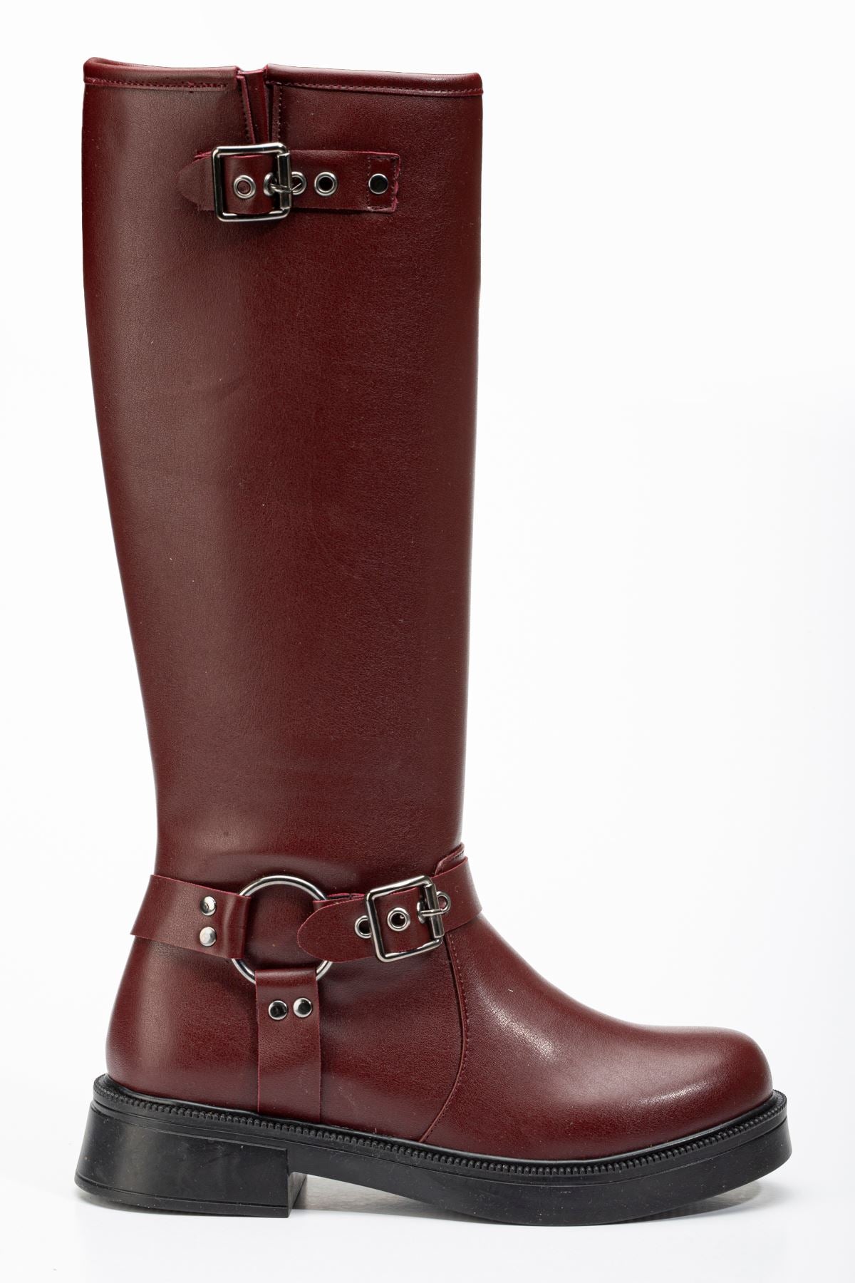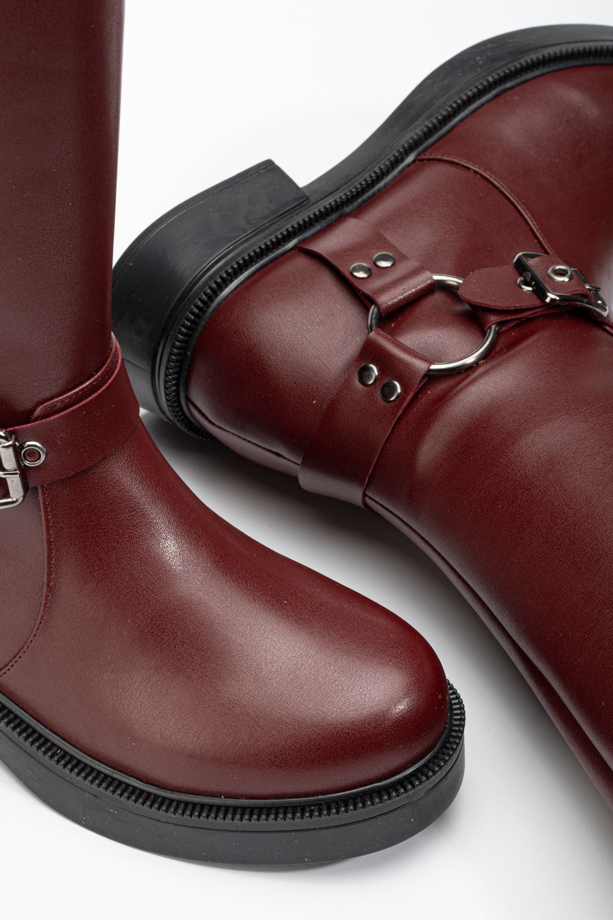 Ayakkabı Aşkı Bordo Toka Aksesuarlı Fermuarlı Günlük Kadın Çizme