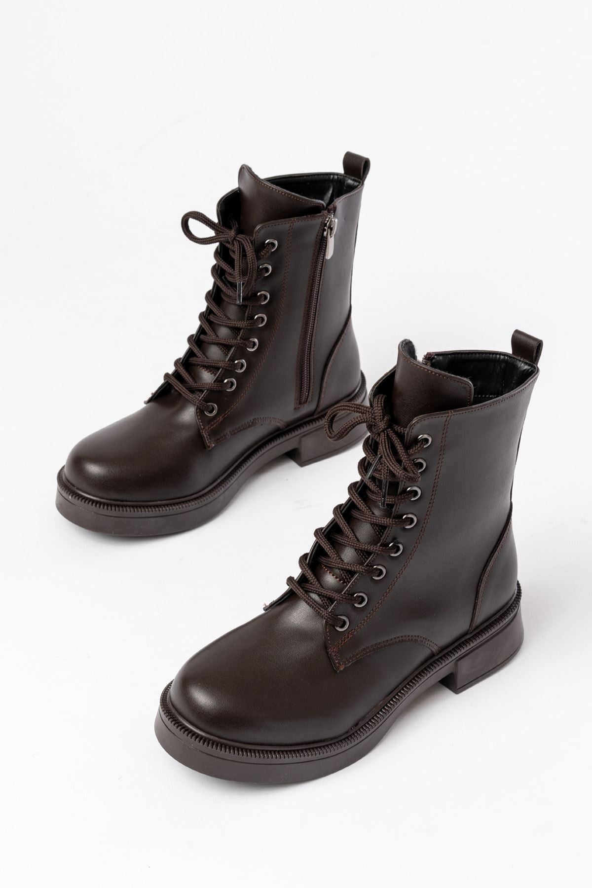 Ayakkabı Aşkı Kahve Düz Topuklu Bağcıklı Fermuarlı Günlük Kadın Bot