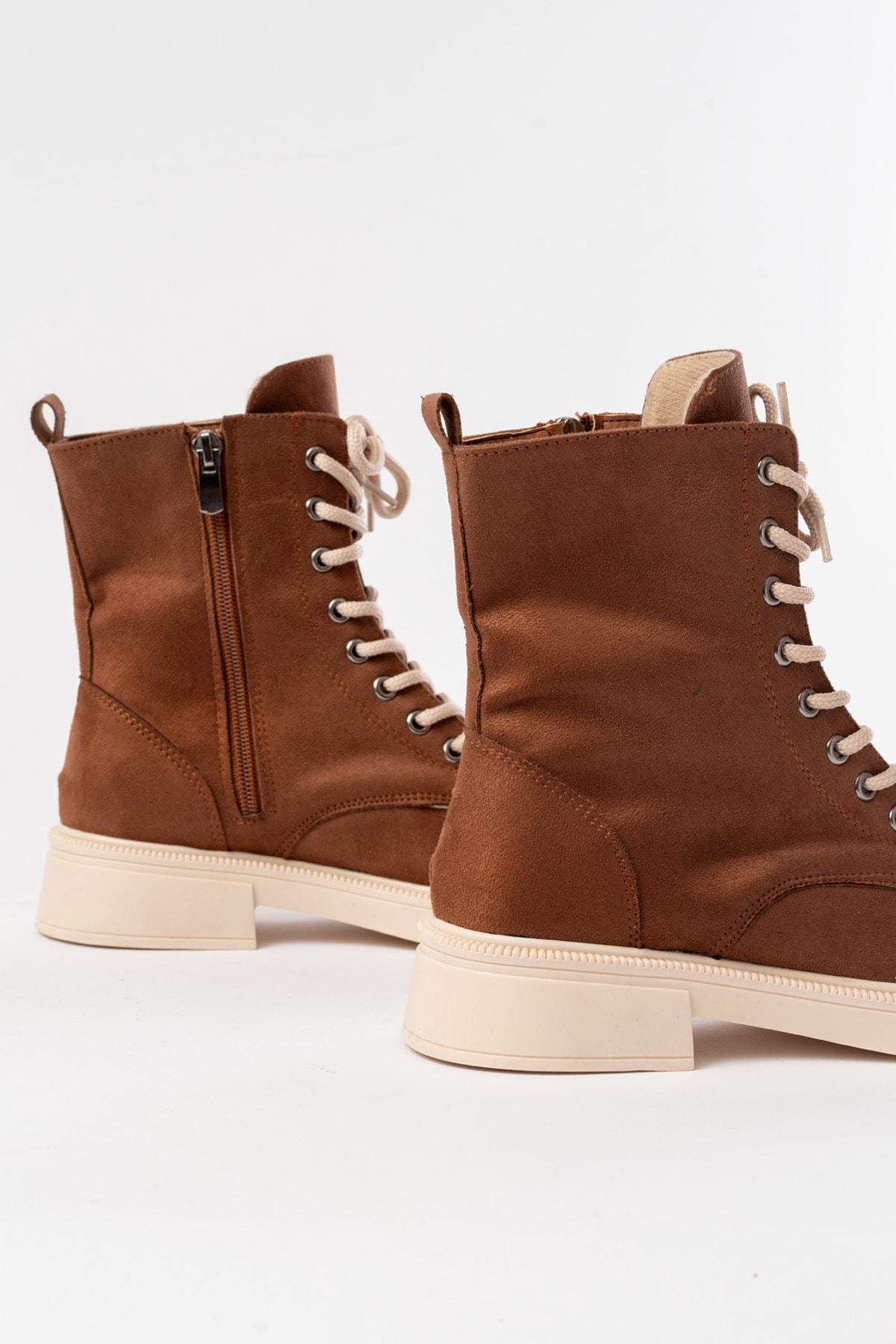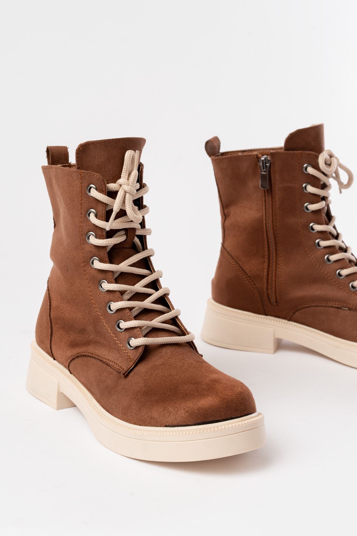 Ayakkabı Aşkı Taba Süet Düz Topuklu Bağcıklı Fermuarlı Günlük Kadın Bot