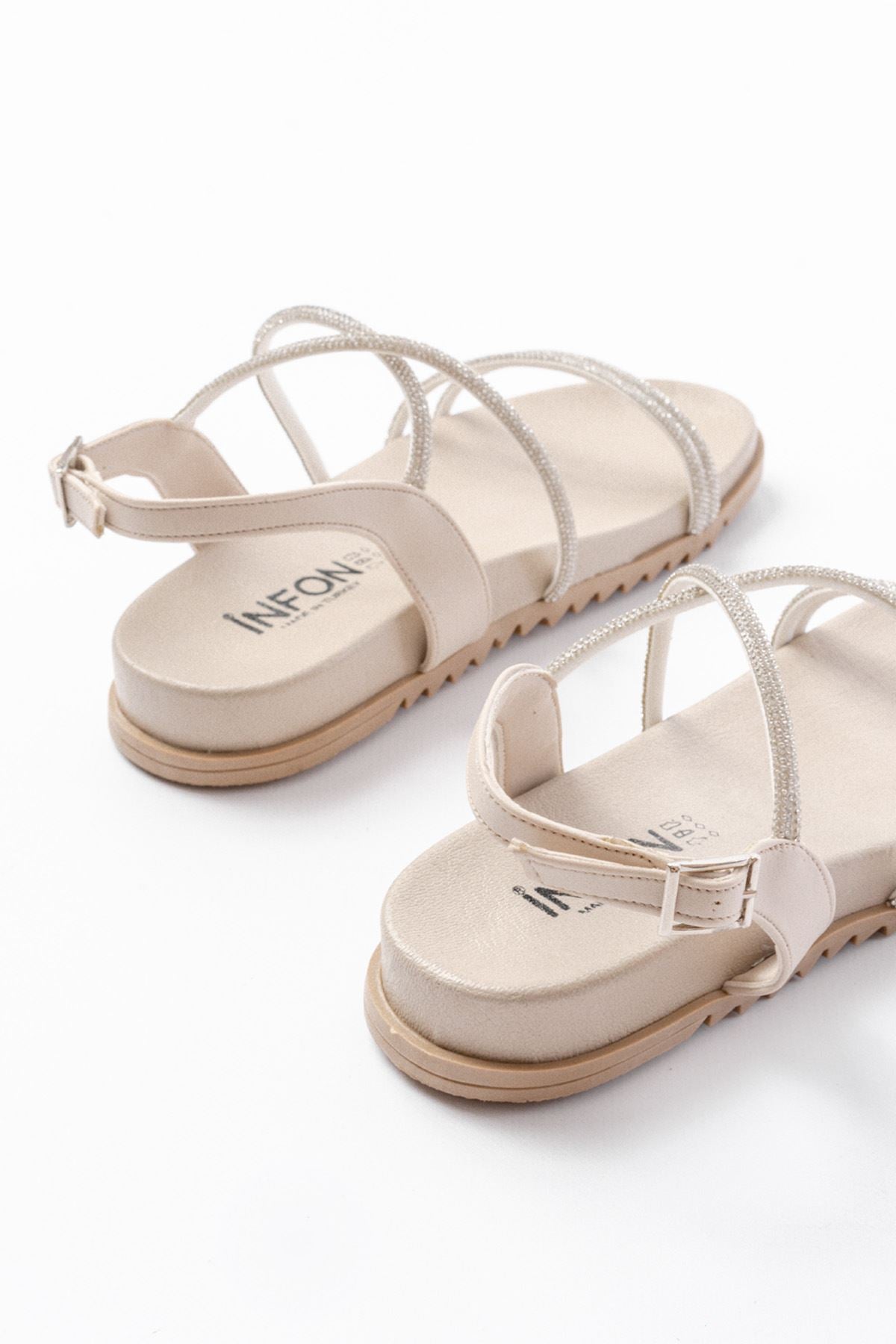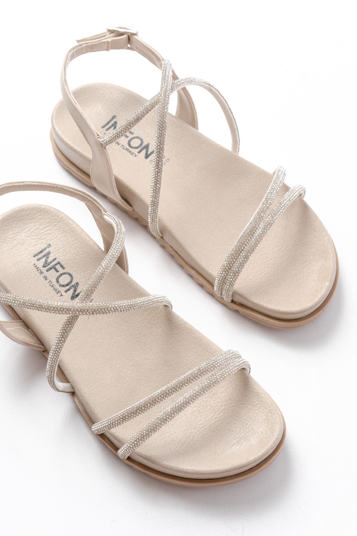 Ayakkabı Aşkı Bej Gümüş Taşlı Günlük Kadın Sandalet