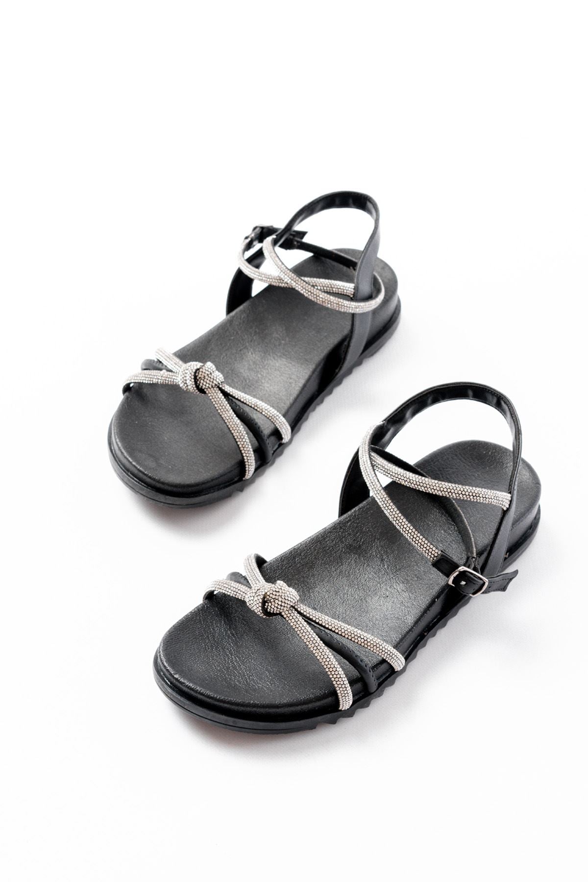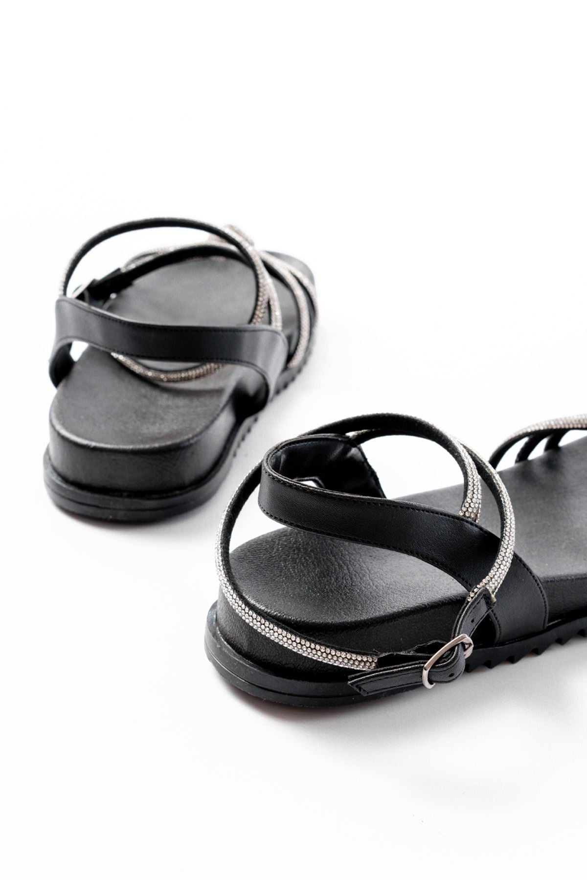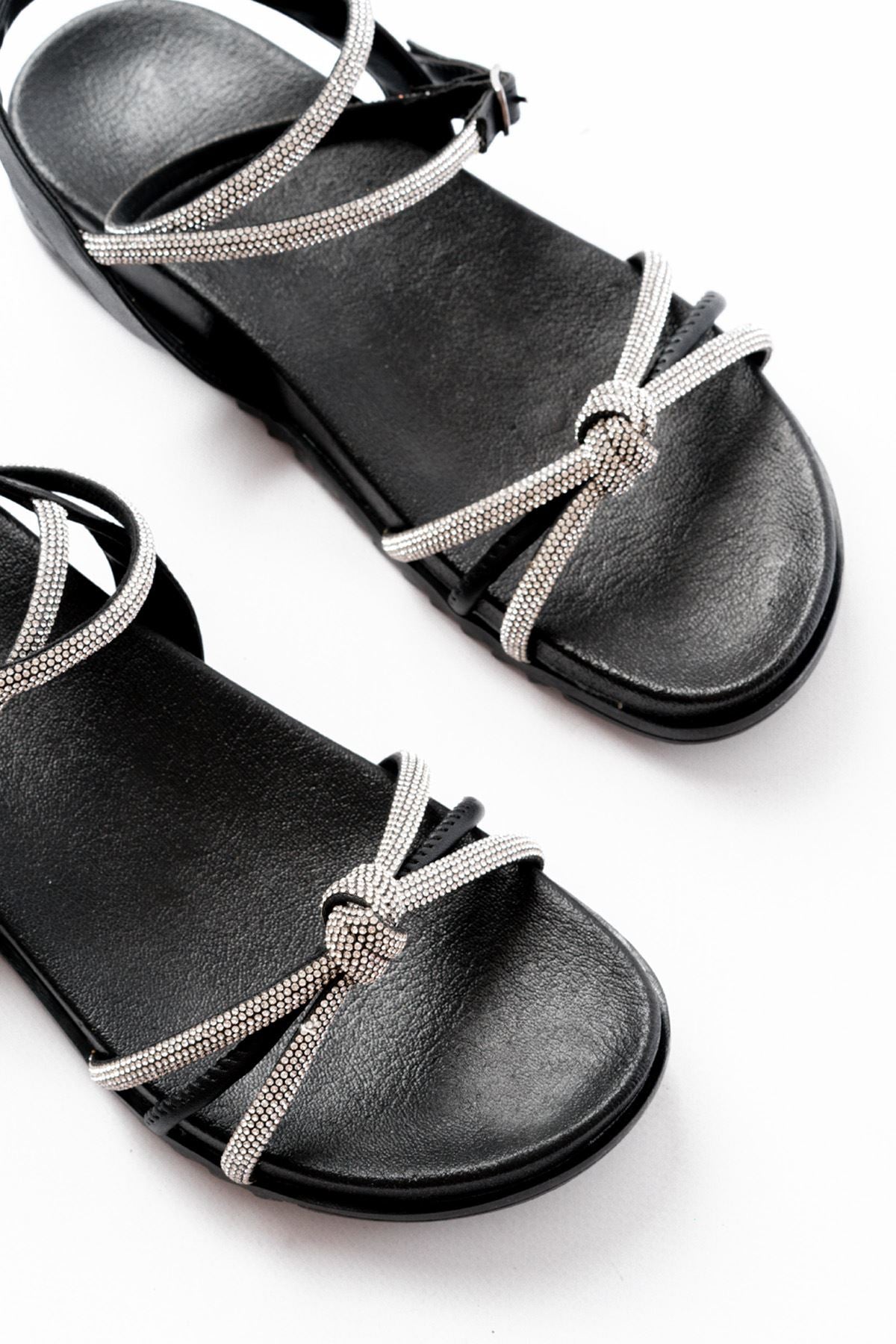 Ayakkabı Aşkı Siyah Gümüş Taşlı Günlük Kadın Sandalet
