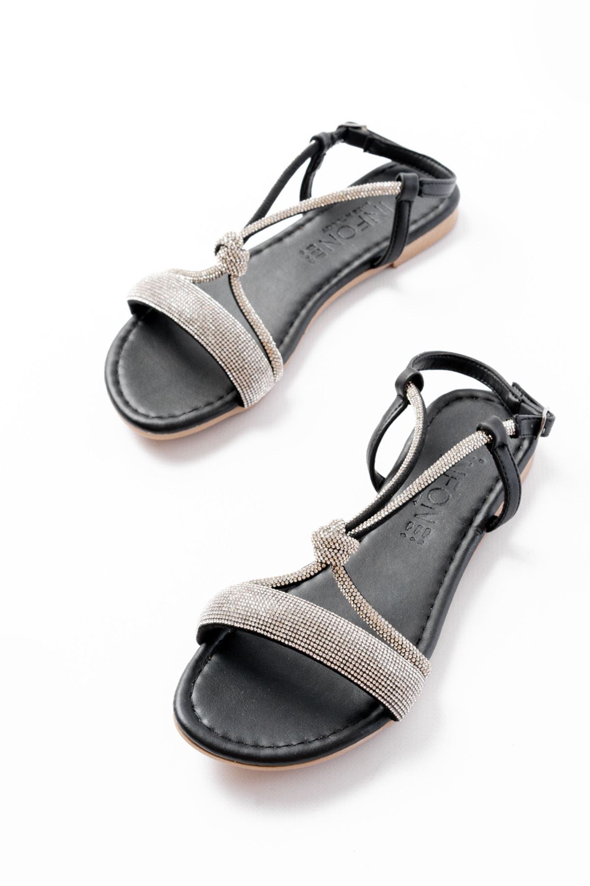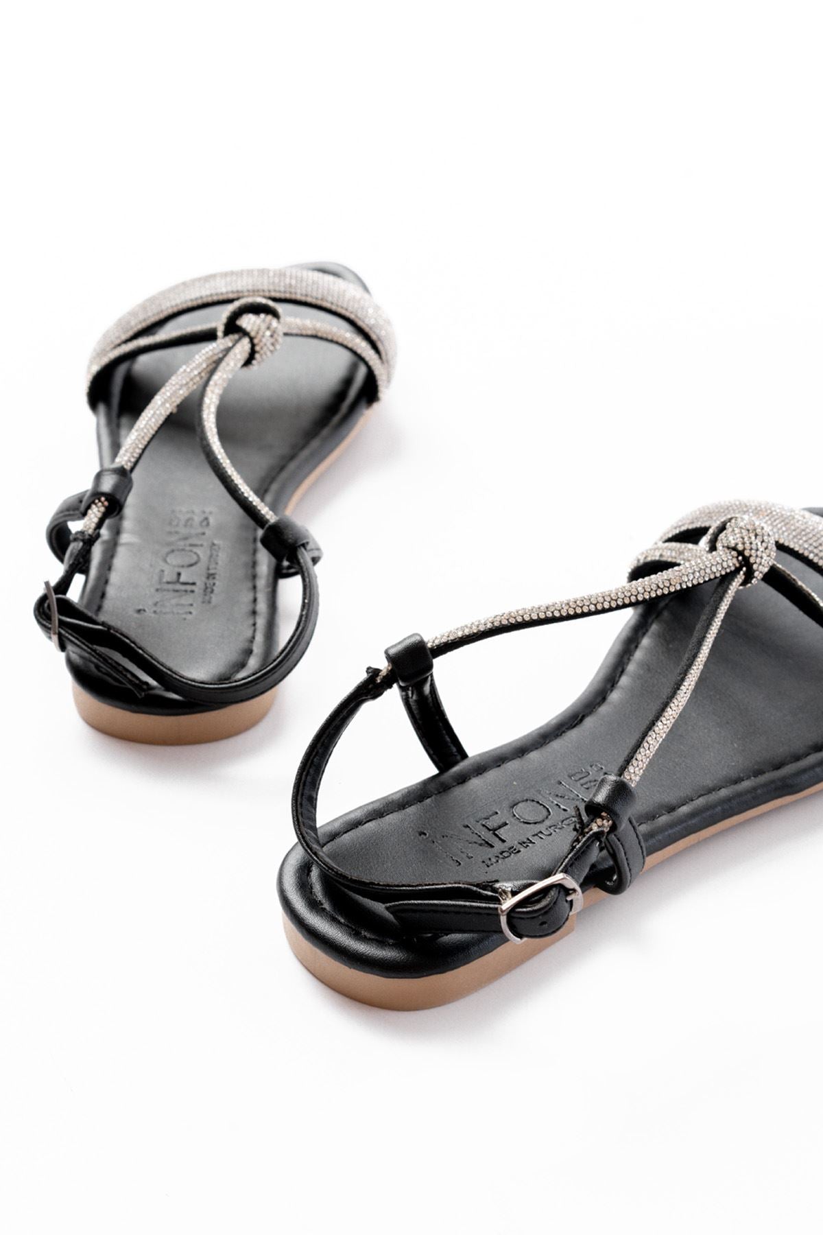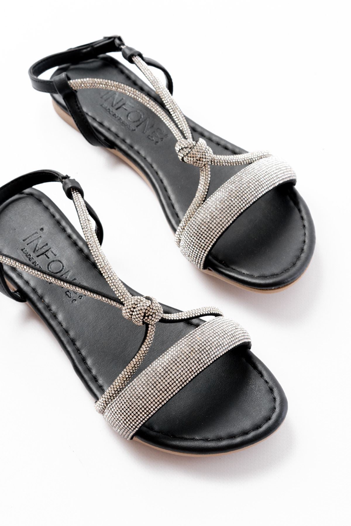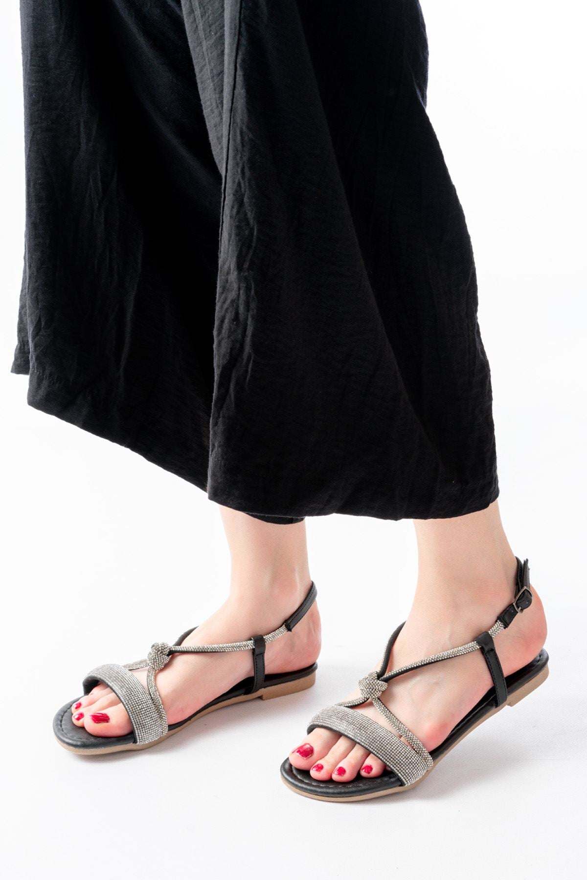 Ayakkabı Aşkı Siyah Gümüş Taşlı Günlük Kadın Sandalet