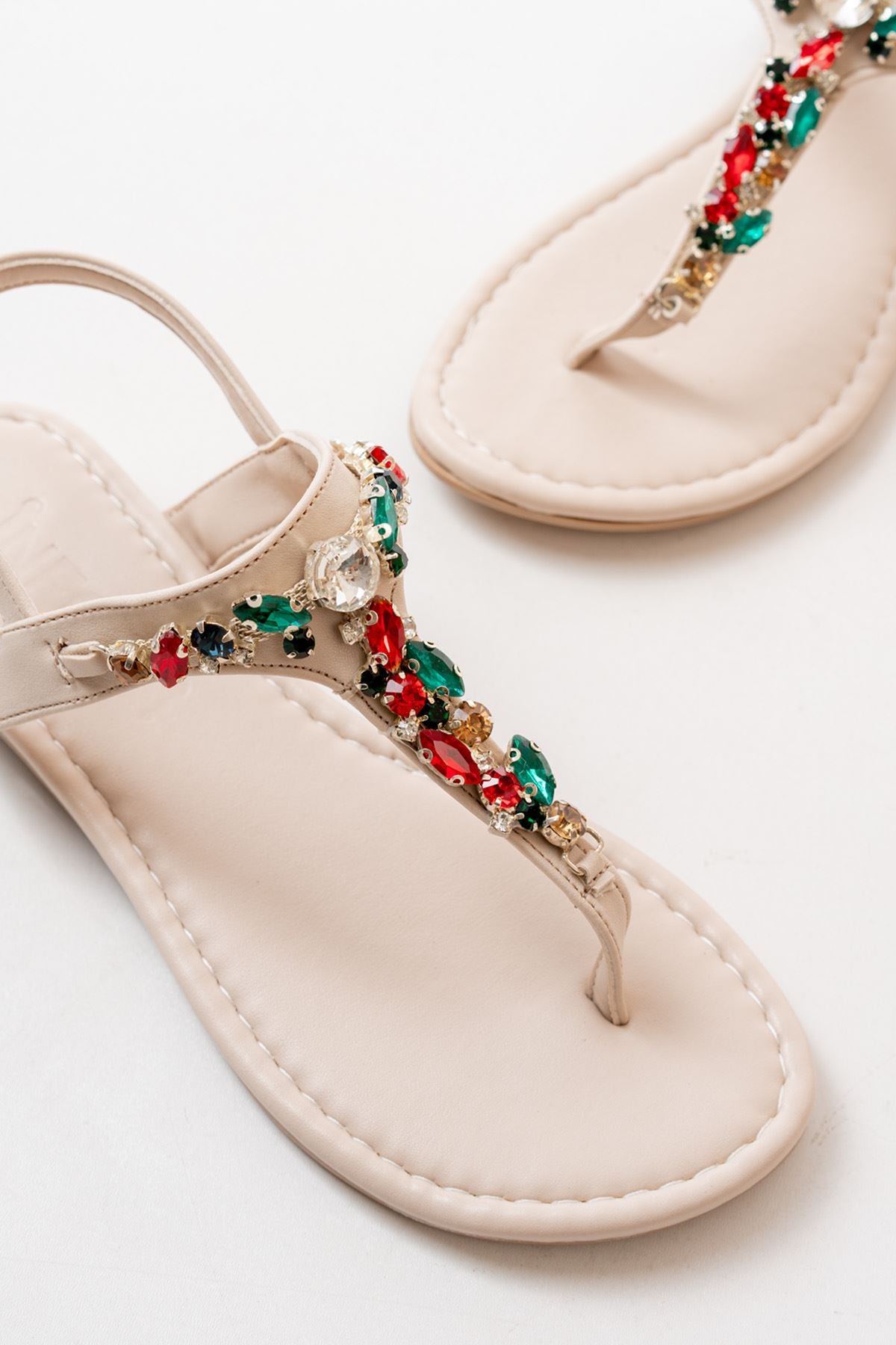 Ayakkabı Aşkı Bej Multi Taşlı Parmak Arası Kadın Sandalet