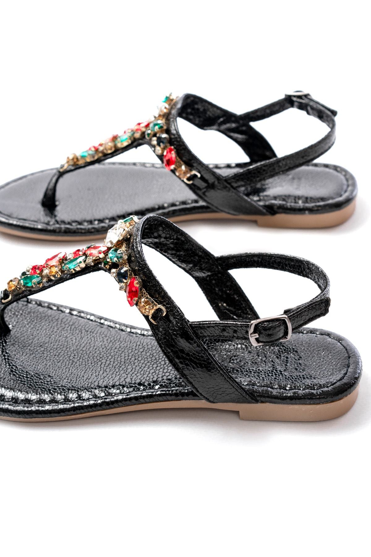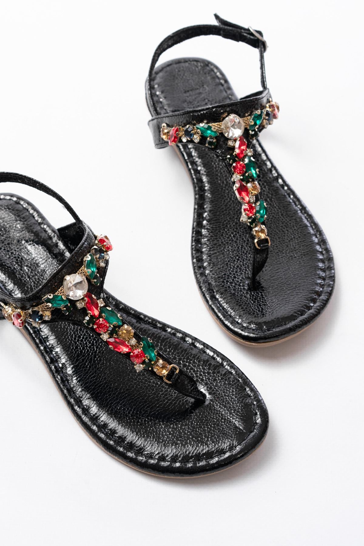 Ayakkabı Aşkı Siyah Multi Cam Kırığı Taşlı Parmak Arası Kadın Sandalet
