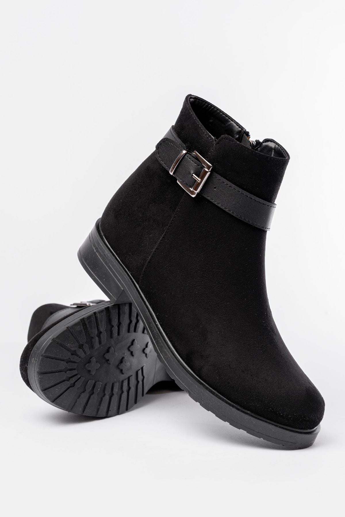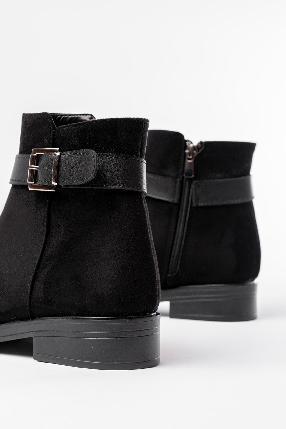Ayakkabı Aşkı 165-204/1 Siyah Süet Toka Aksesuarlı Fermuarlı Günlük Kadın Bot