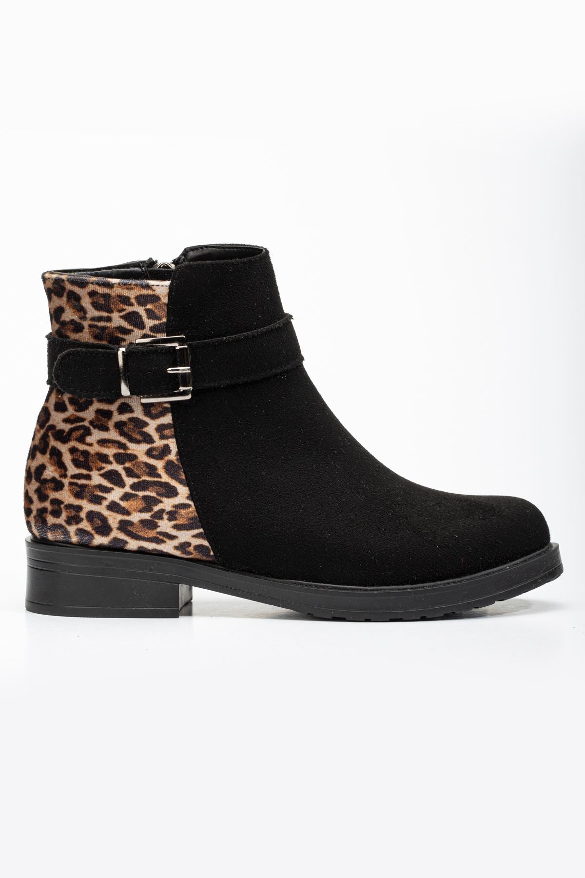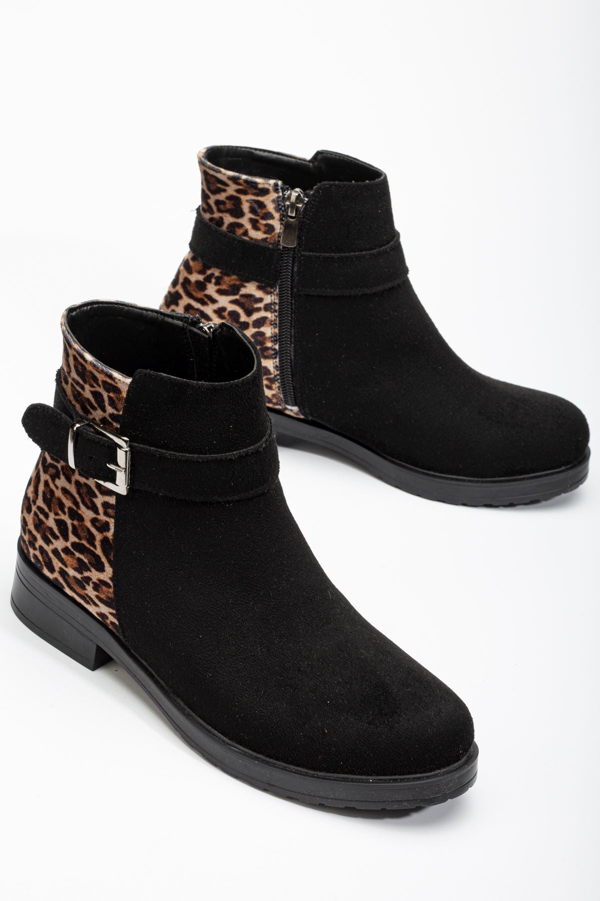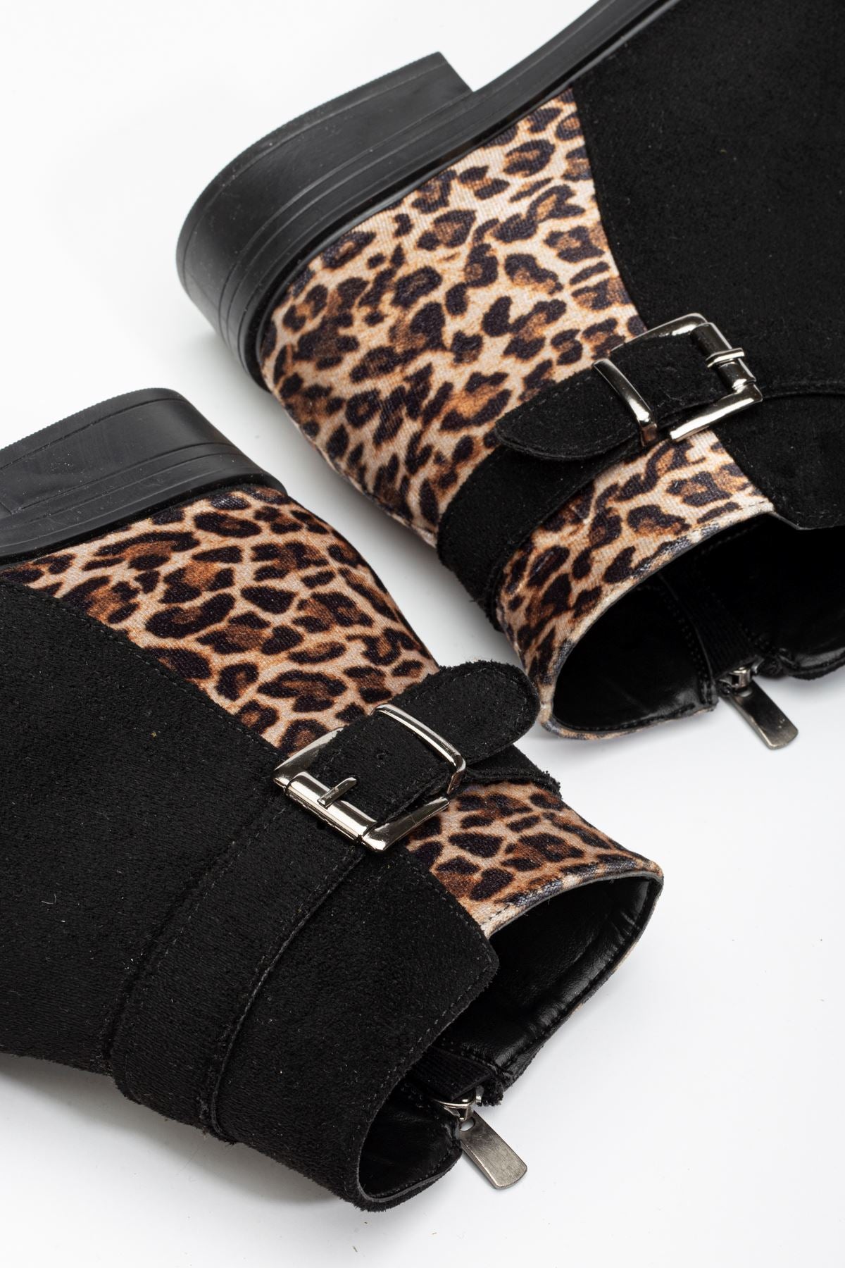 Ayakkabı Aşkı 165-204/1 Siyah Süete Leopar Toka Aksesuarlı Fermuarlı Günlük Kadın Bot