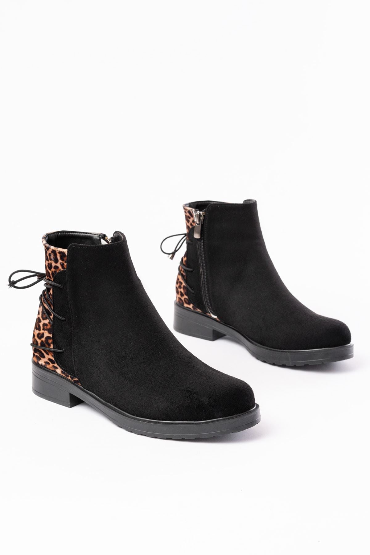 Ayakkabı Aşkı Siyah Leopar Arka Bağcık Aksesuarlı Fermuarlı Günlük Kadın Bot
