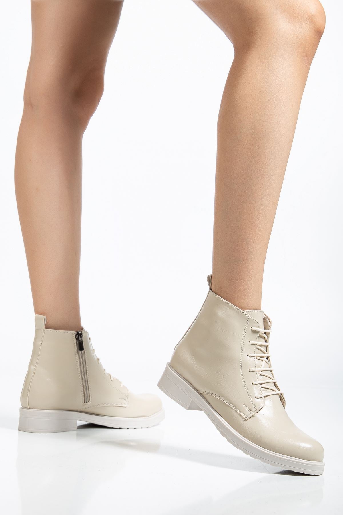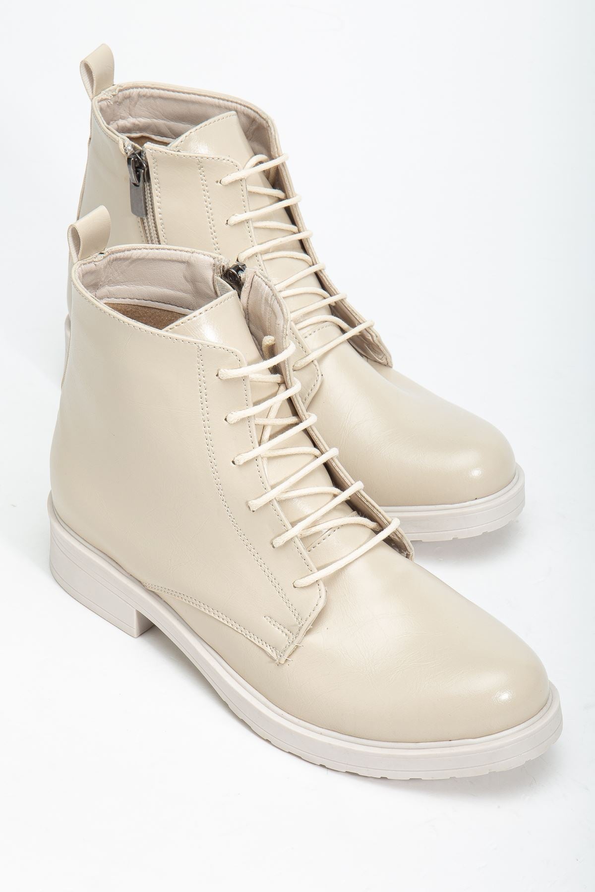 Ayakkabı Aşkı Bej Yanki Bağcıklı Fermuarlı Günlük Kadın Bot