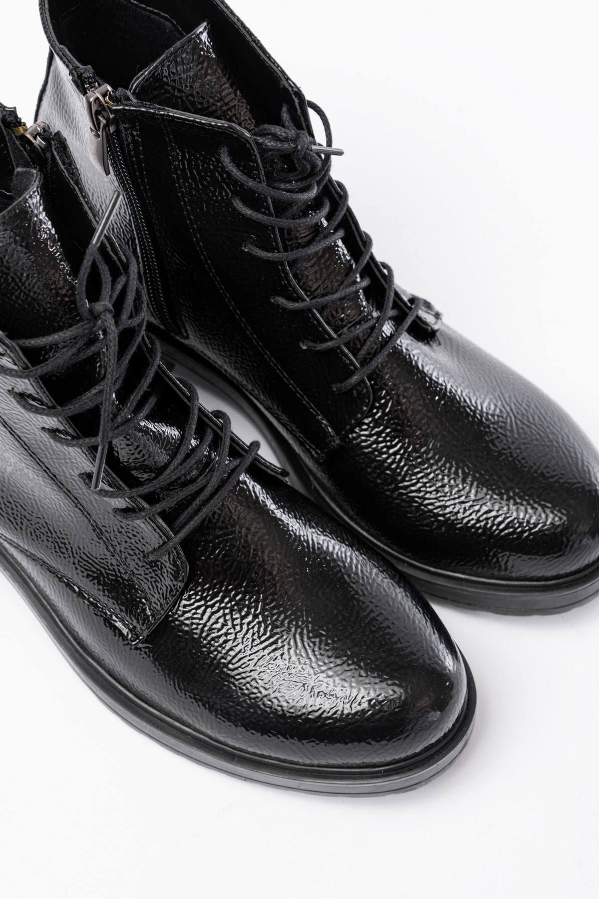 Ayakkabı Aşkı Siyah Rugan Bağcıklı Fermuarlı Günlük Kadın Bot