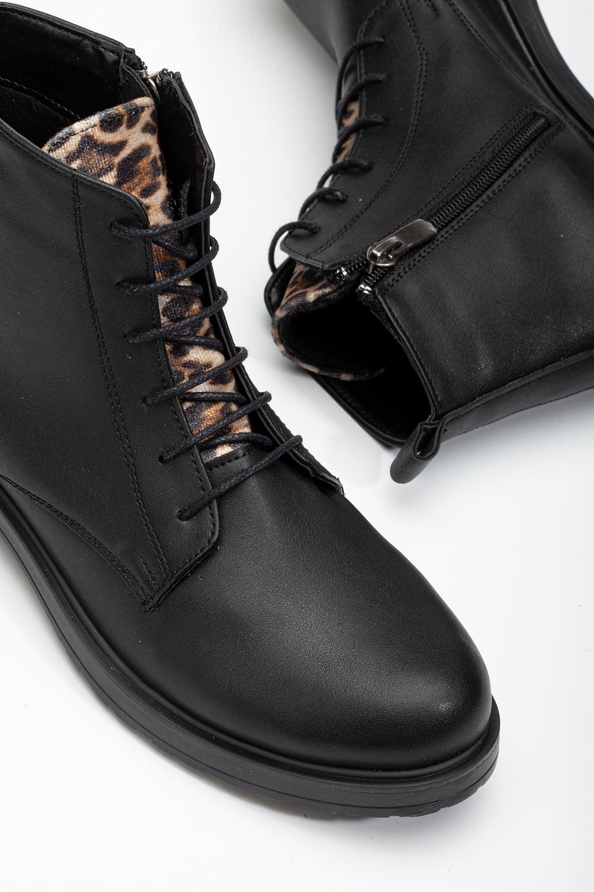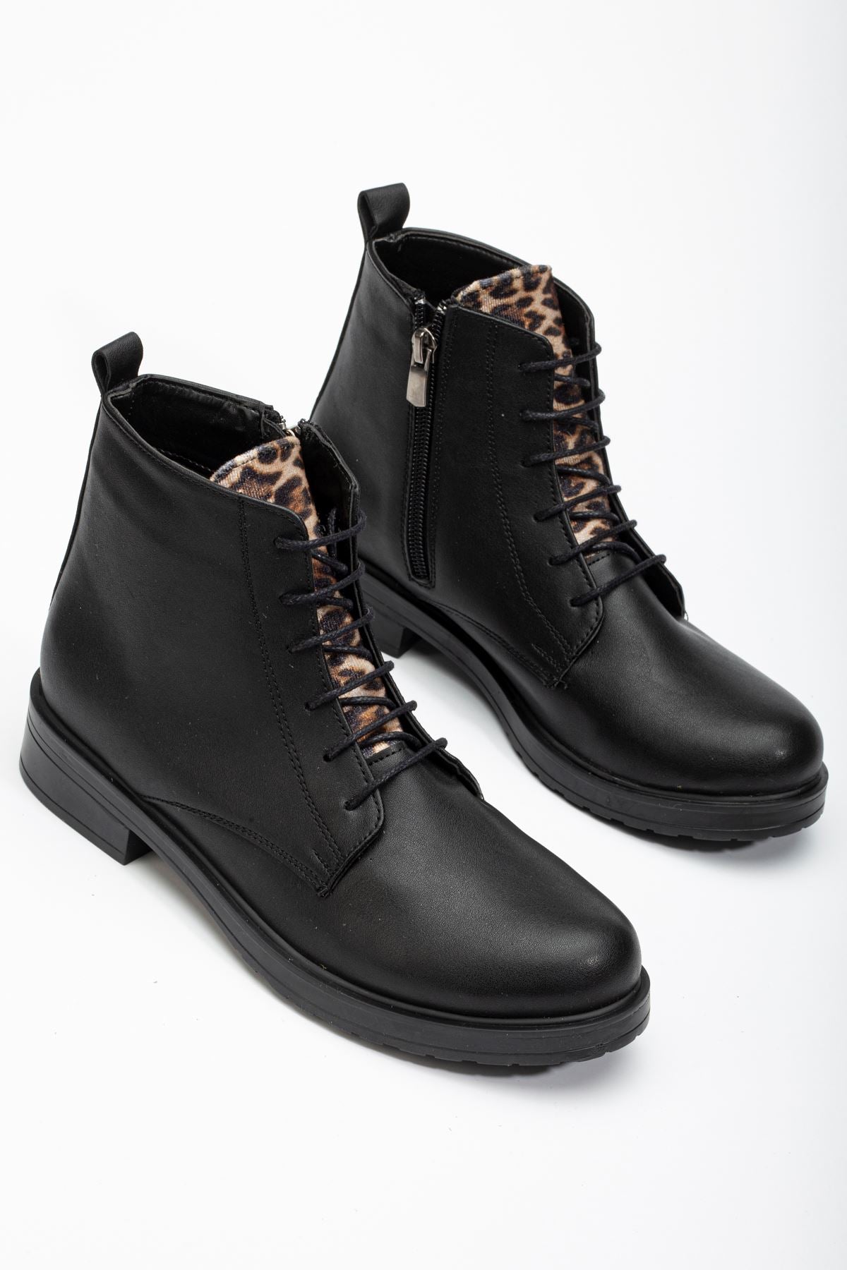 Ayakkabı Aşkı Siyaha Leopar Bağcıklı Fermuarlı Günlük Kadın Bot