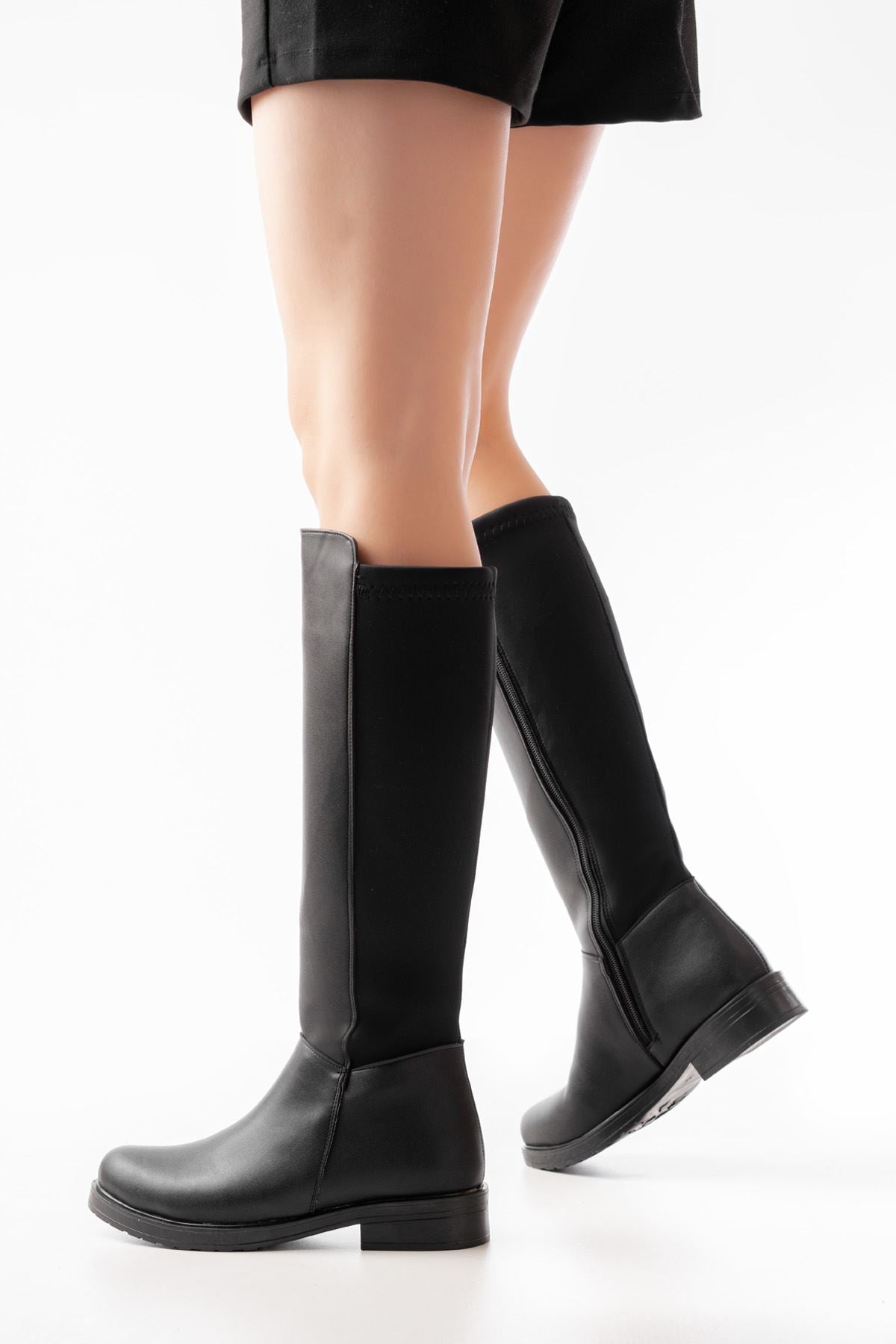 Ayakkabı Aşkı Siyah Arka Streç Fermuarlı Günlük Kadın Çizme