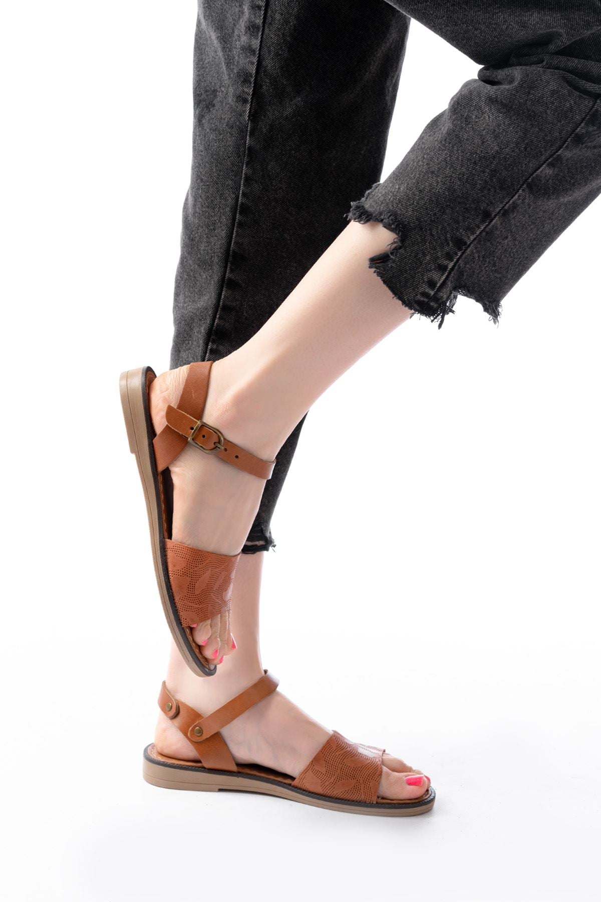 Ayakkabı Aşkı Taba Ortopedik Hakiki Deri Kadın Sandalet