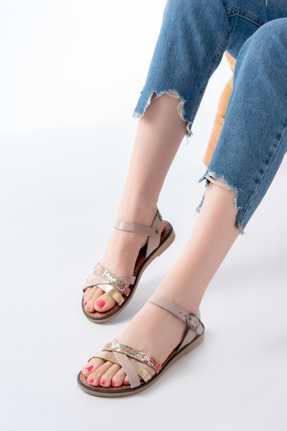 Ayakkabı Aşkı BeJ Garni Ortopedik Hakiki Deri Kadın Sandalet