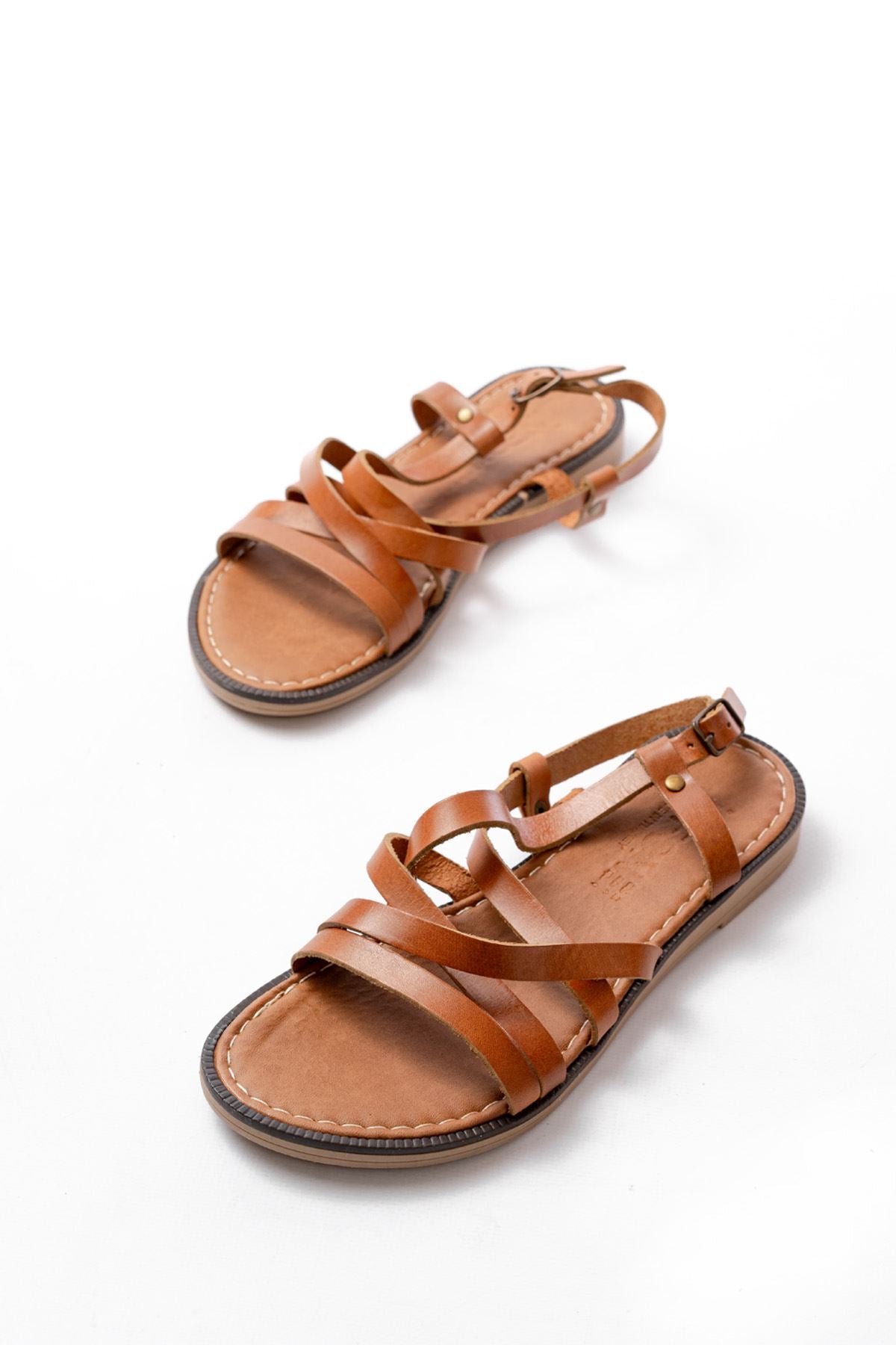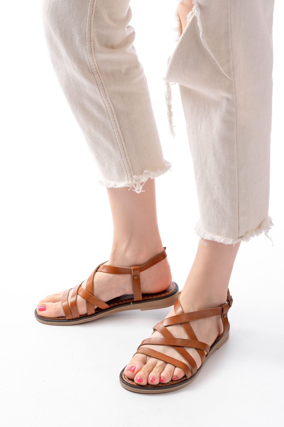 Ayakkabı Aşkı Taba Ortopedik Hakiki Deri Kadın Sandalet