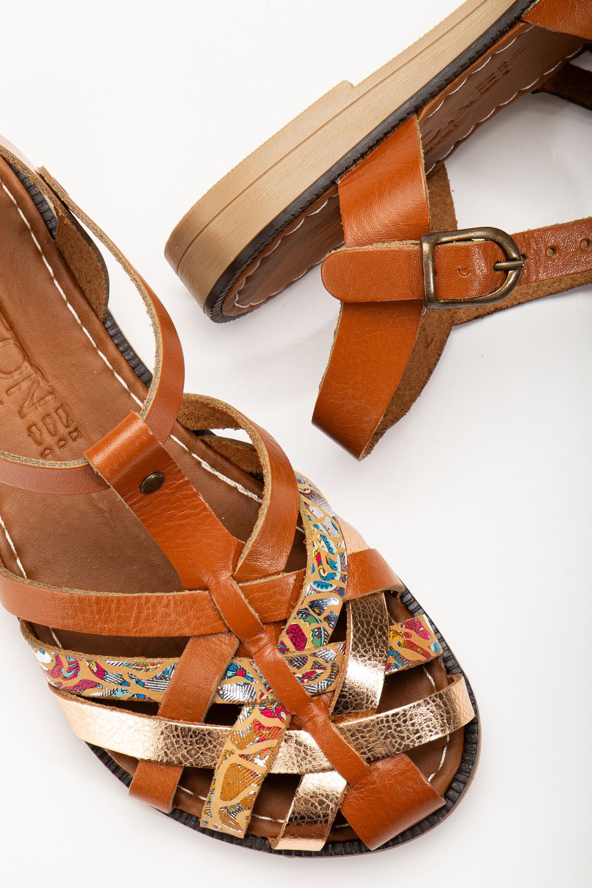 Ayakkabı Aşkı Taba Garni Ortopedik Hakiki Deri Kadın Sandalet