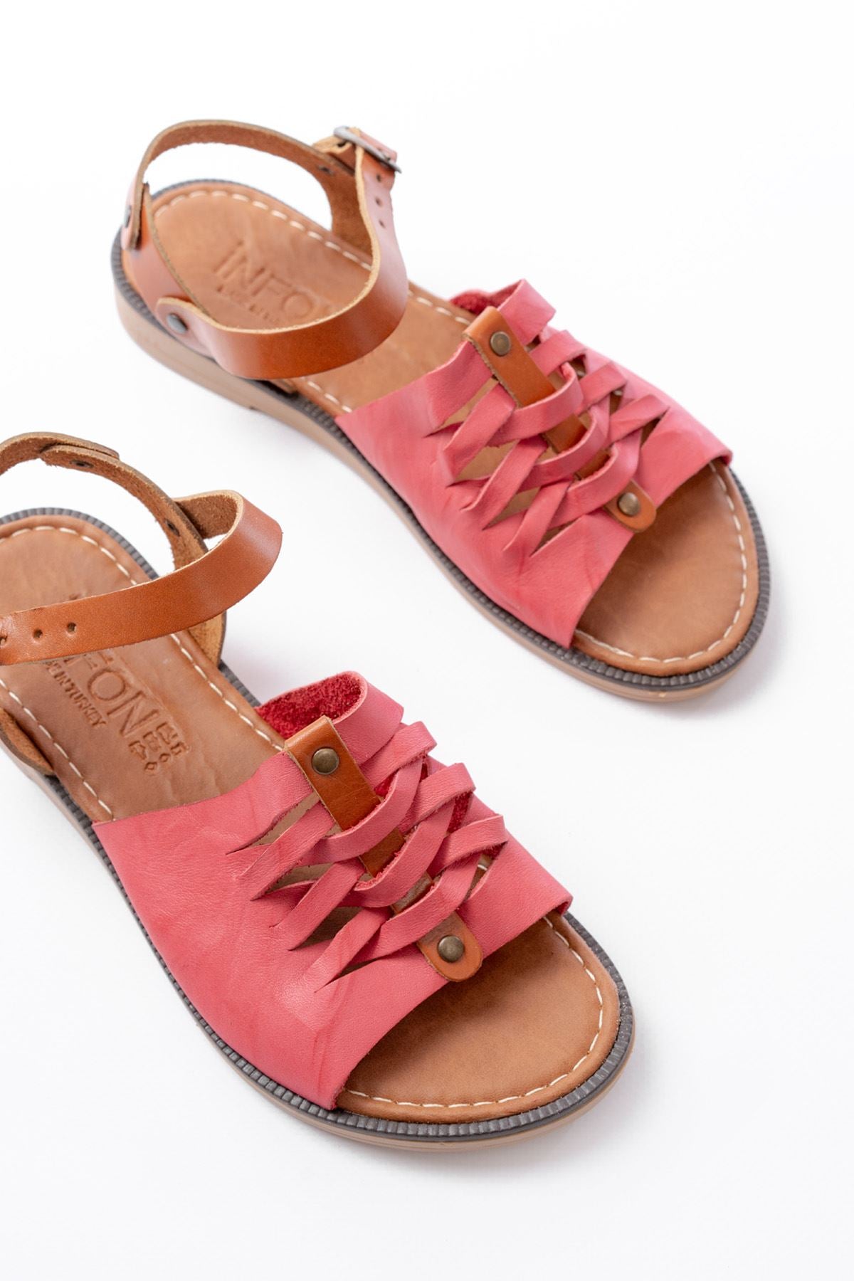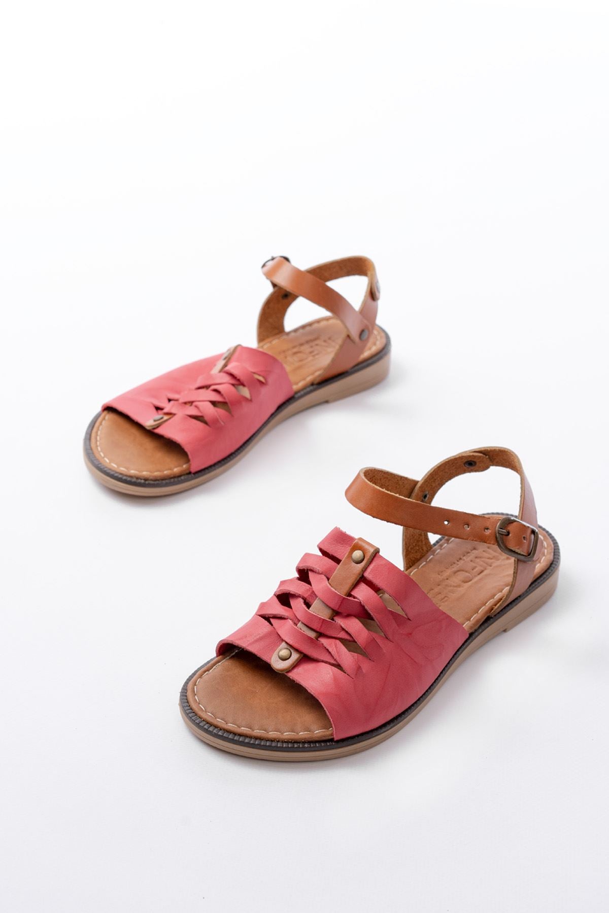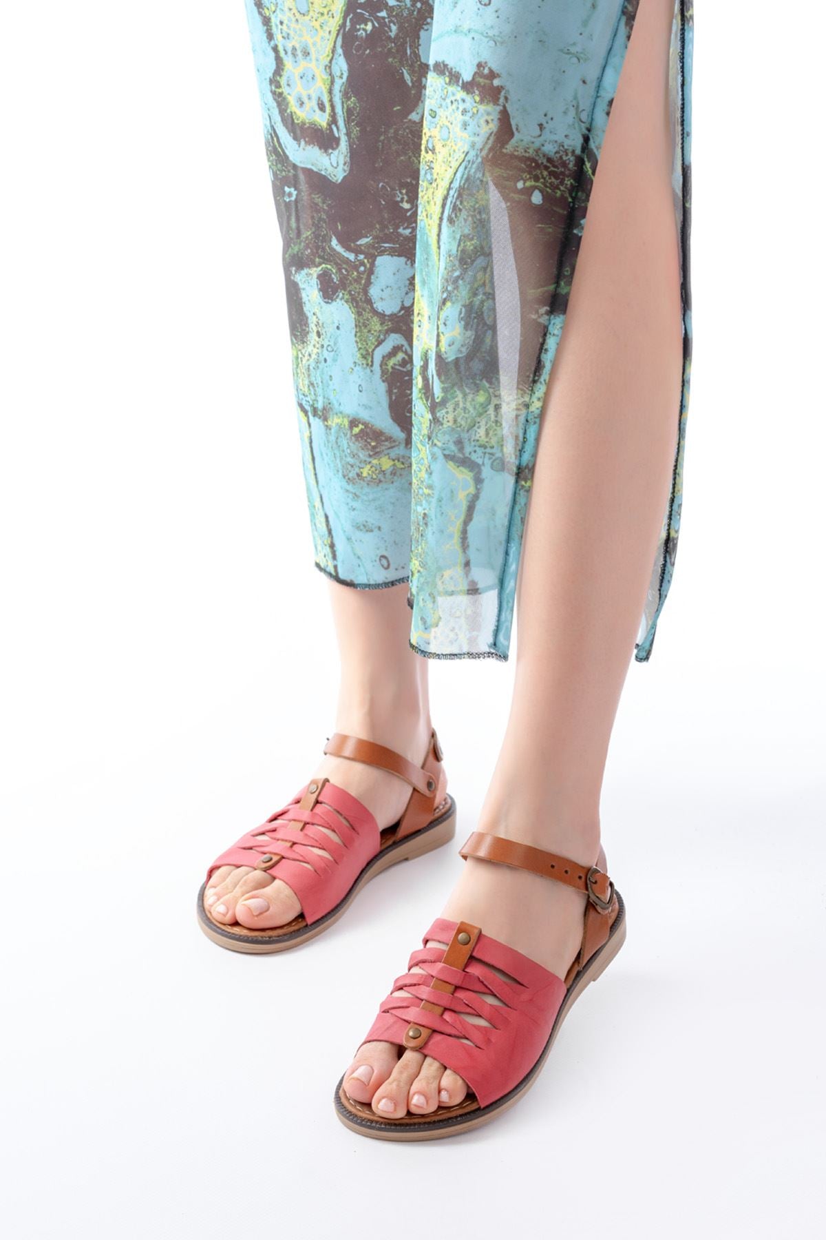 Ayakkabı Aşkı Fuşya Ortopedik Hakiki Deri Kadın Sandalet