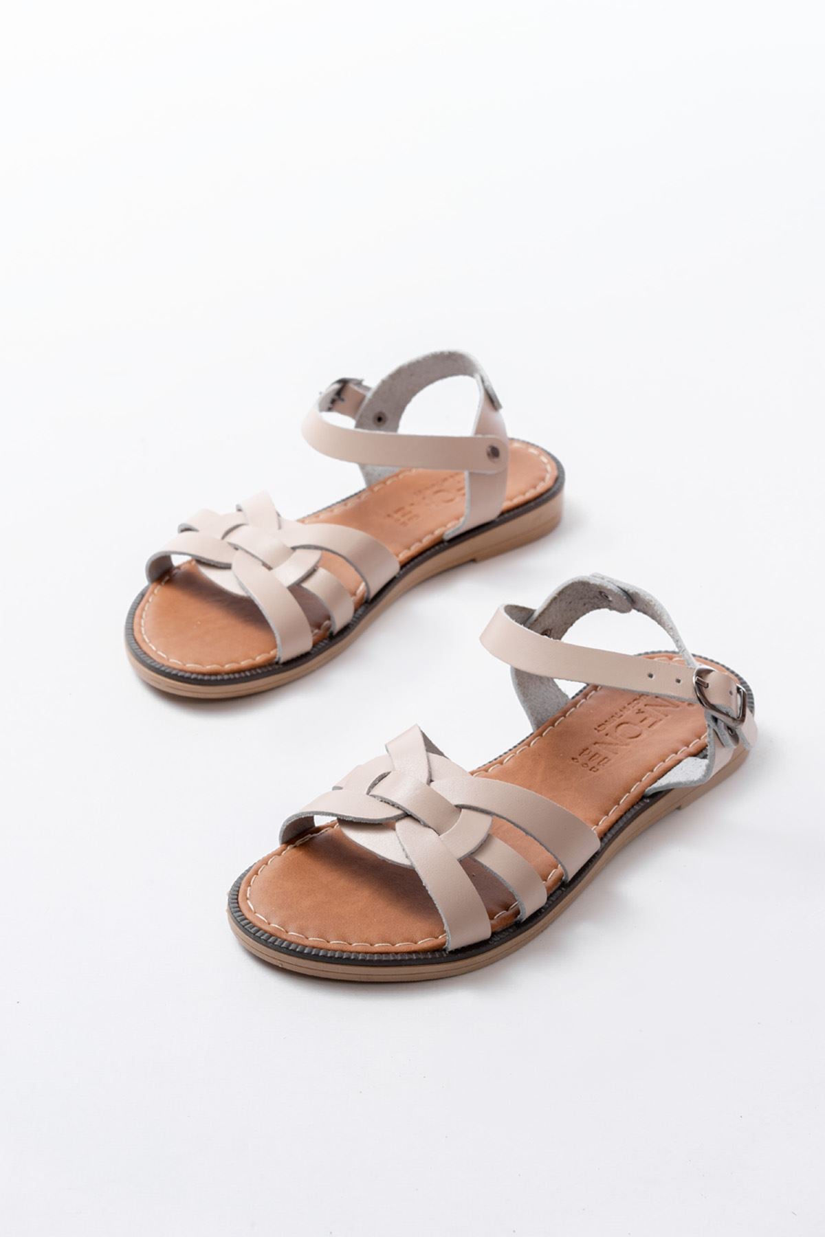 Ayakkabı Aşkı Bej Hakiki Deri Ortopedik Taban Kadın Sandalet