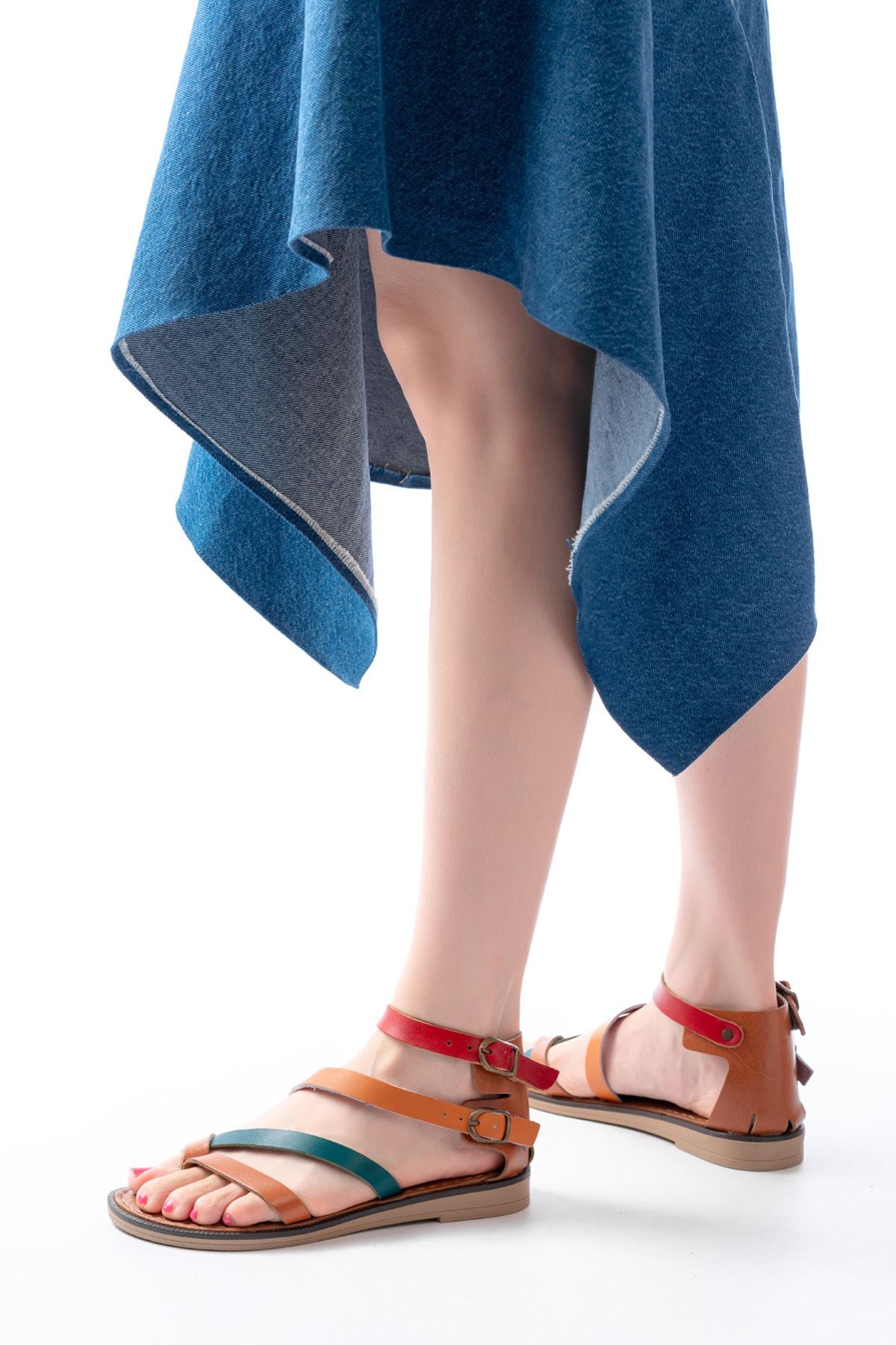 Ayakkabı Aşkı Taba Multi Bilekten Bağlamalı Parmak Arası Kadın Sandalet