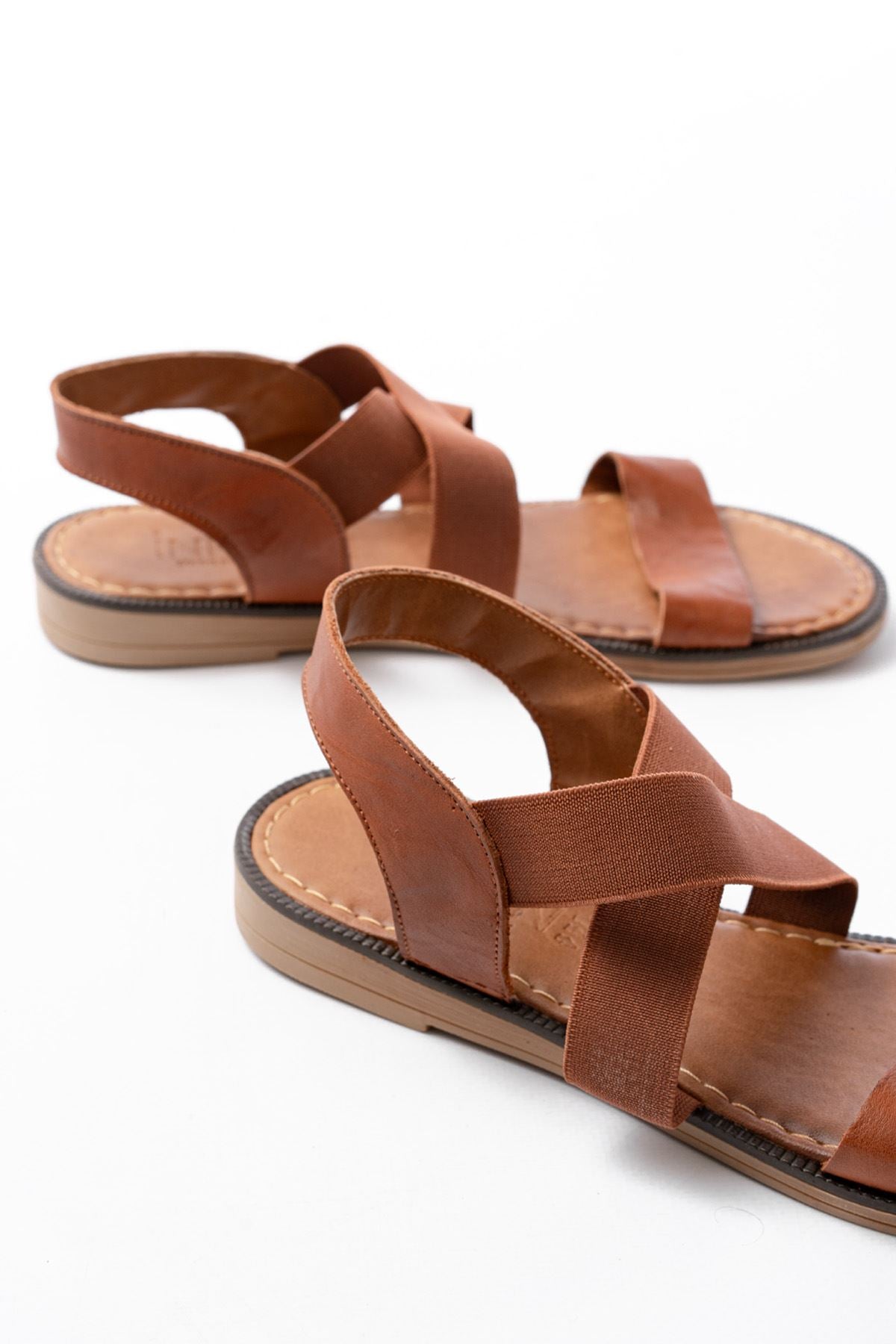 Ayakkabı Aşkı Taba Tek Bantlı Lastikli Hakiki Deri Ortopedik Taban Kadın Sandalet