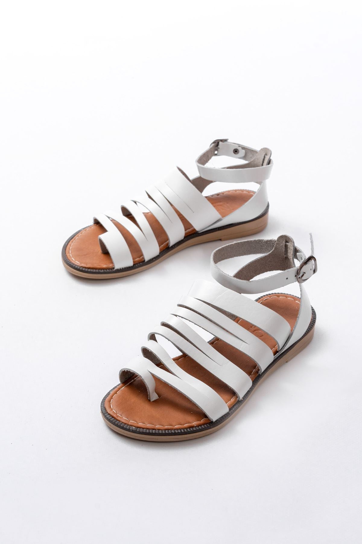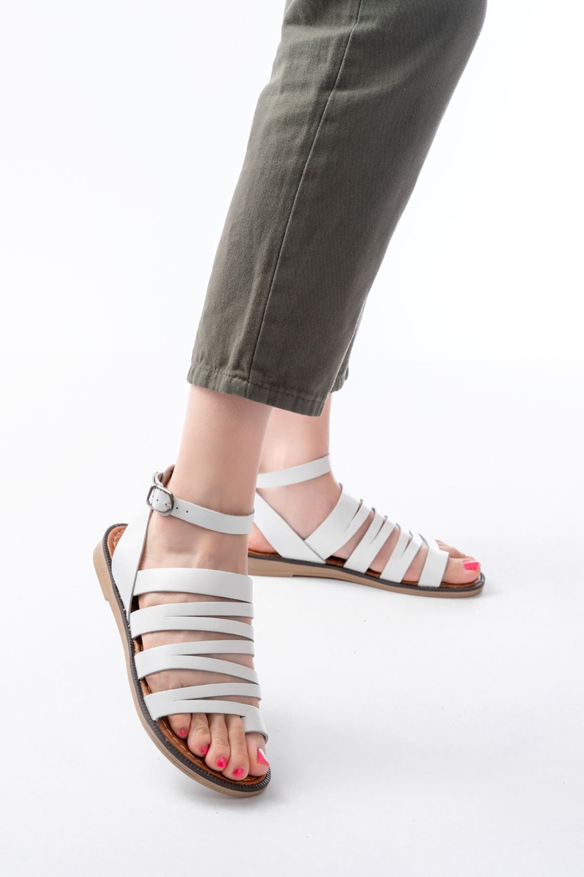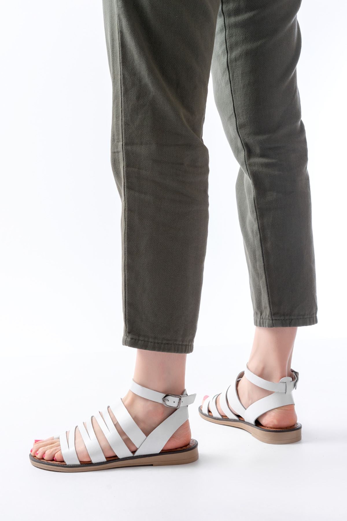 Ayakkabı Aşkı Beyaz Ortopedik Hakiki Deri Kadın Sandalet