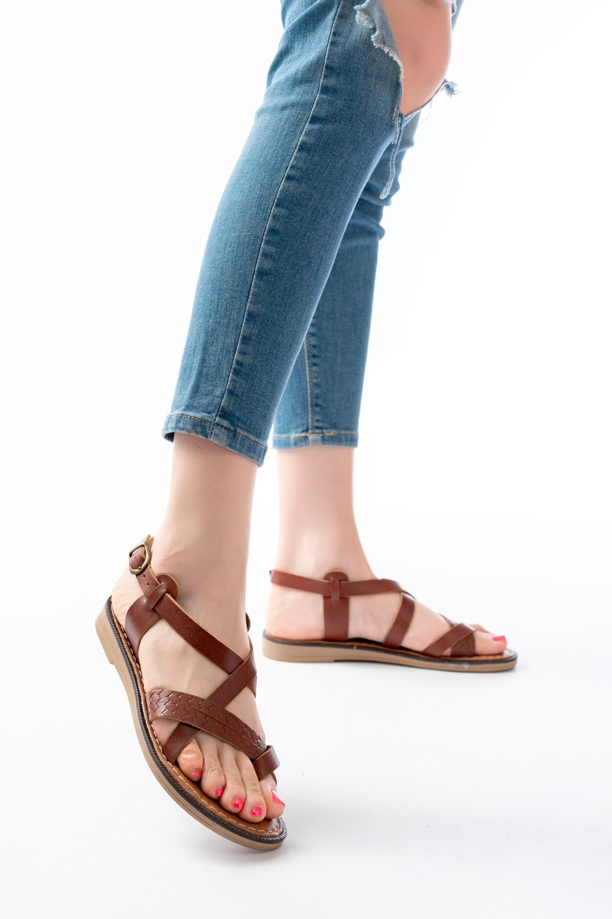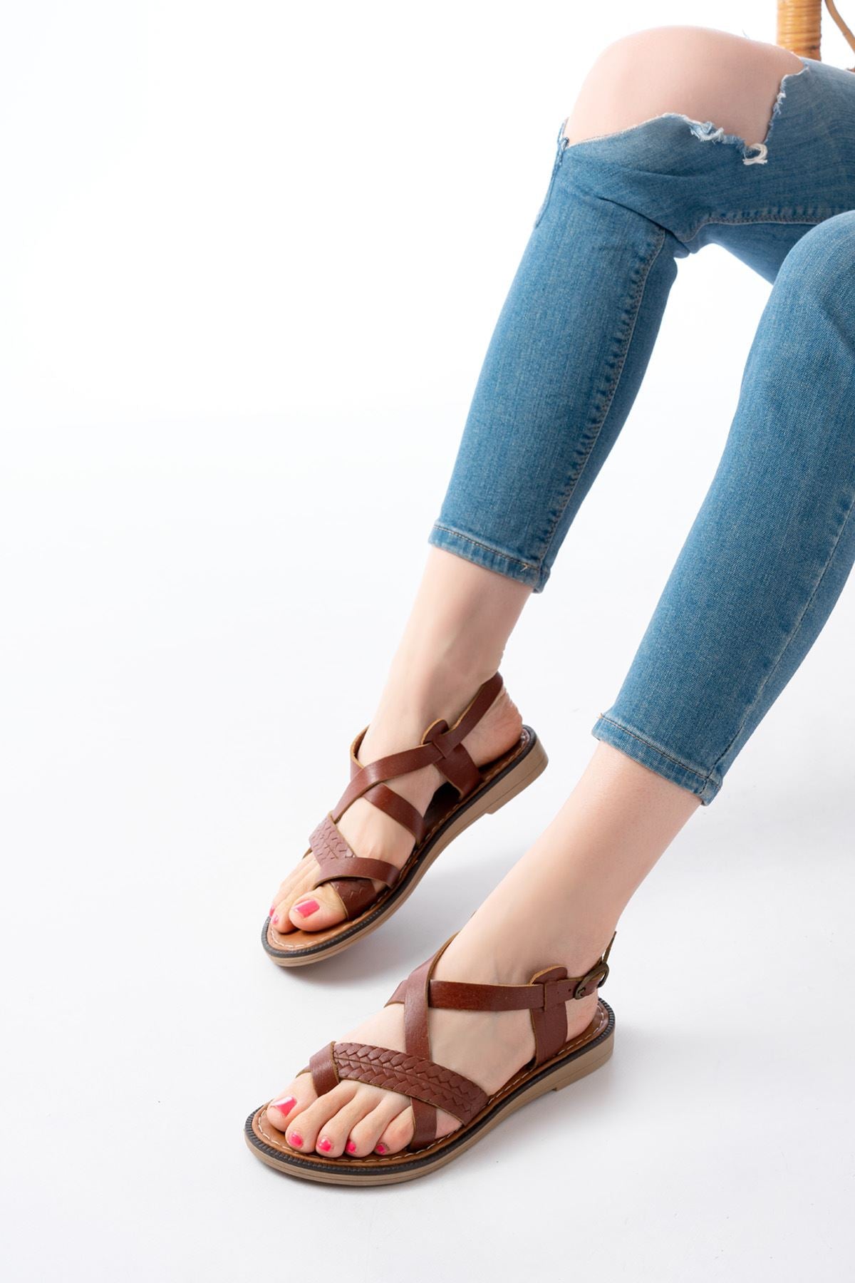 Ayakkabı Aşkı Koyu Kahve Ortopedik Hakiki Deri Kadın Sandalet
