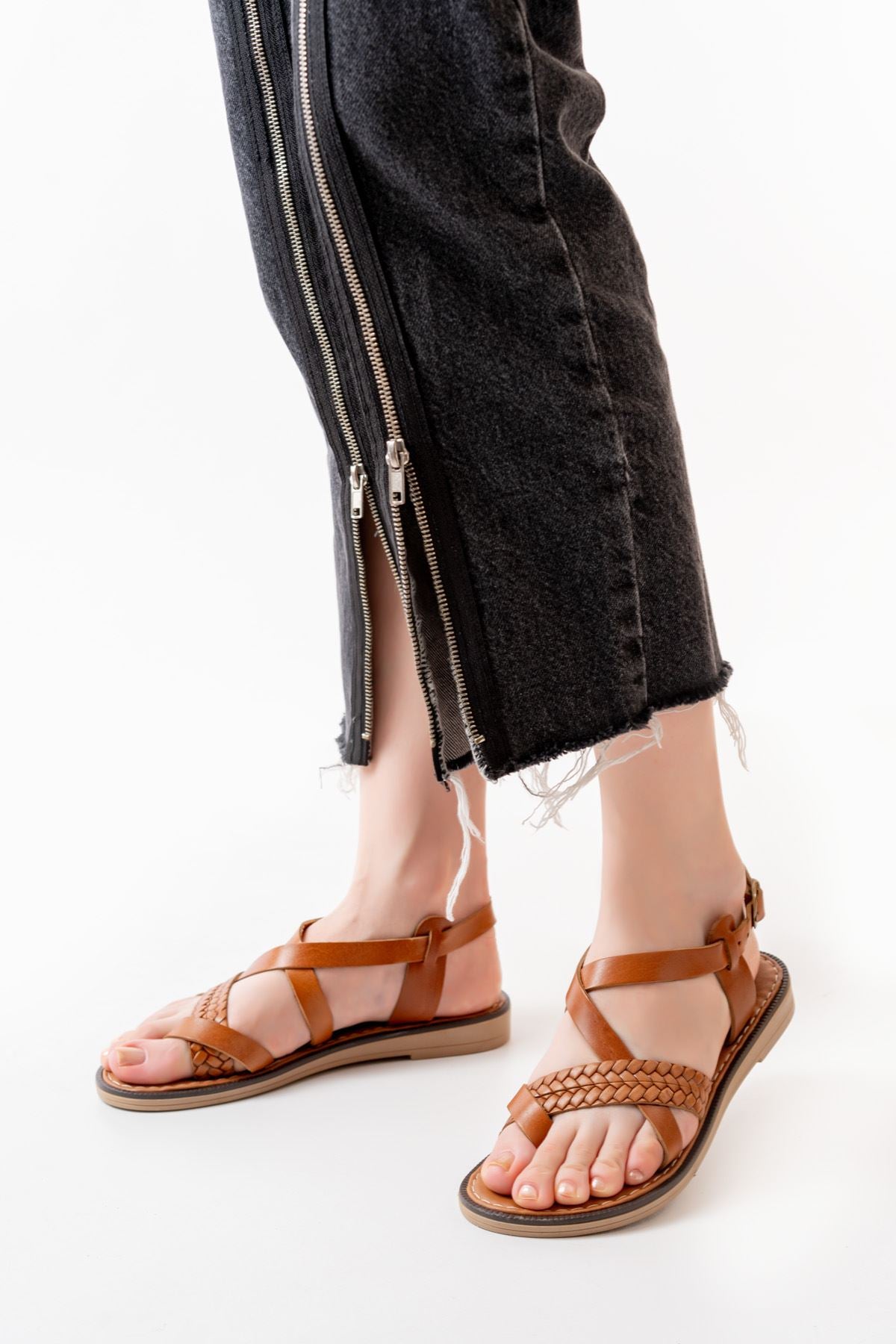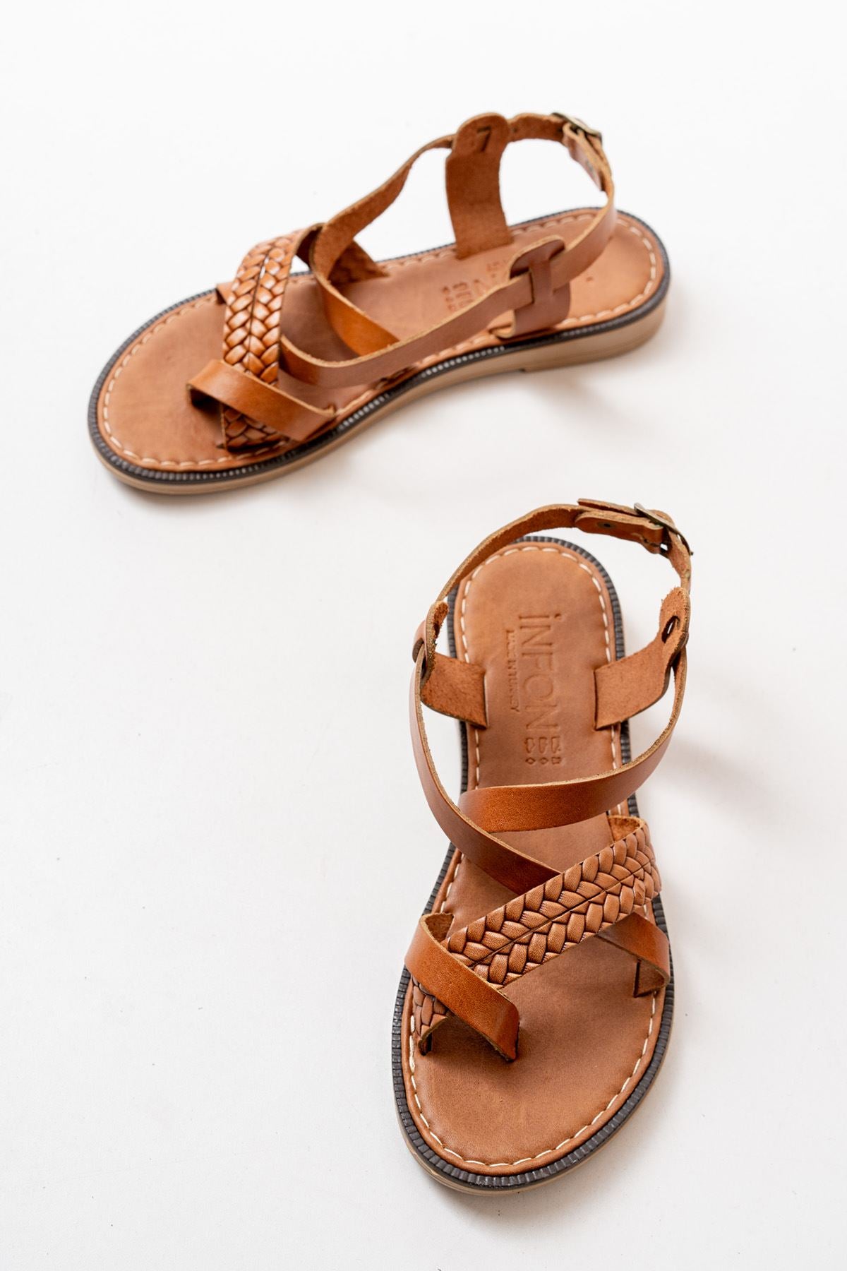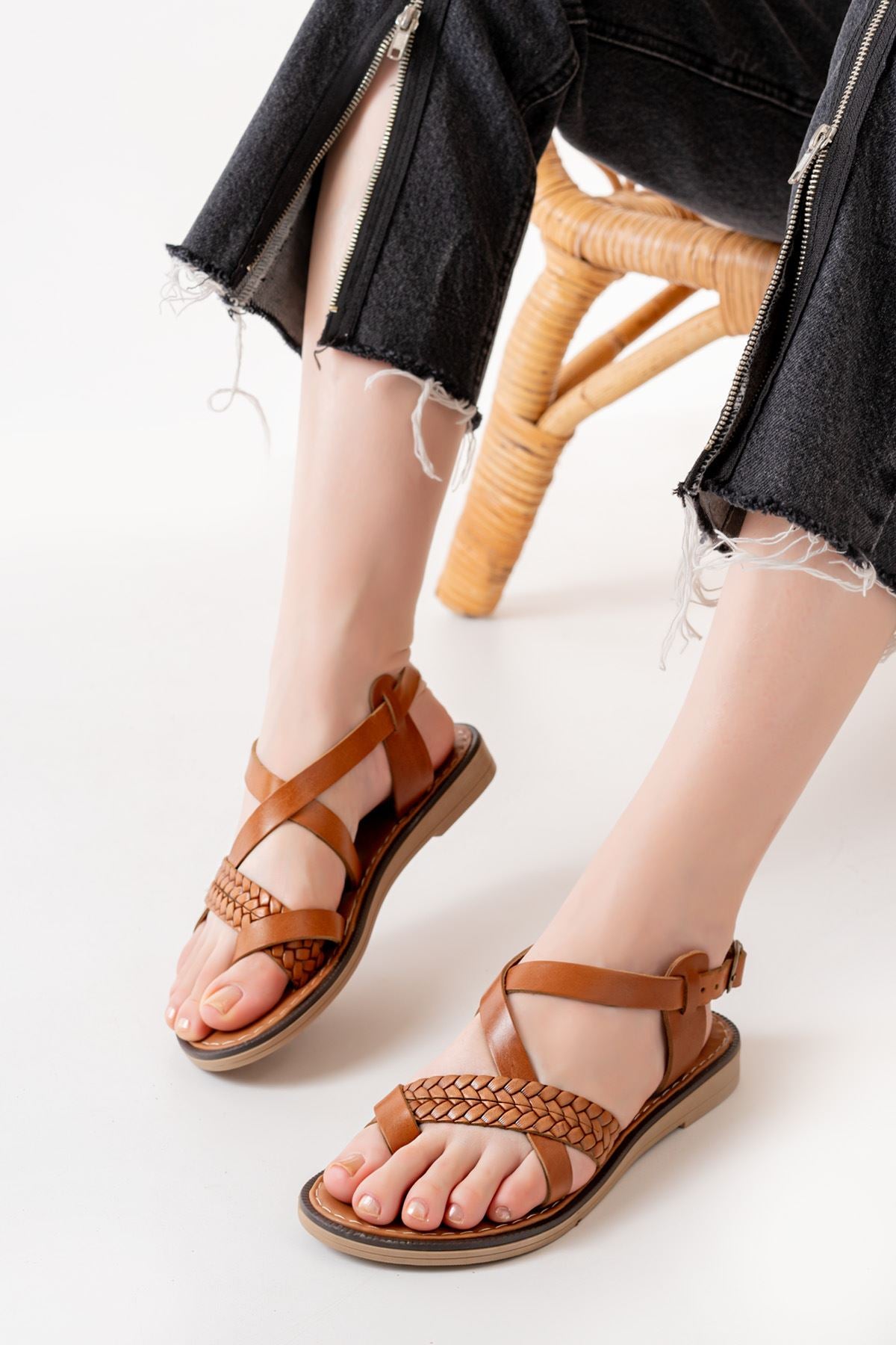 Ayakkabı Aşkı Taba Ortopedik Hakiki Deri Kadın Sandalet