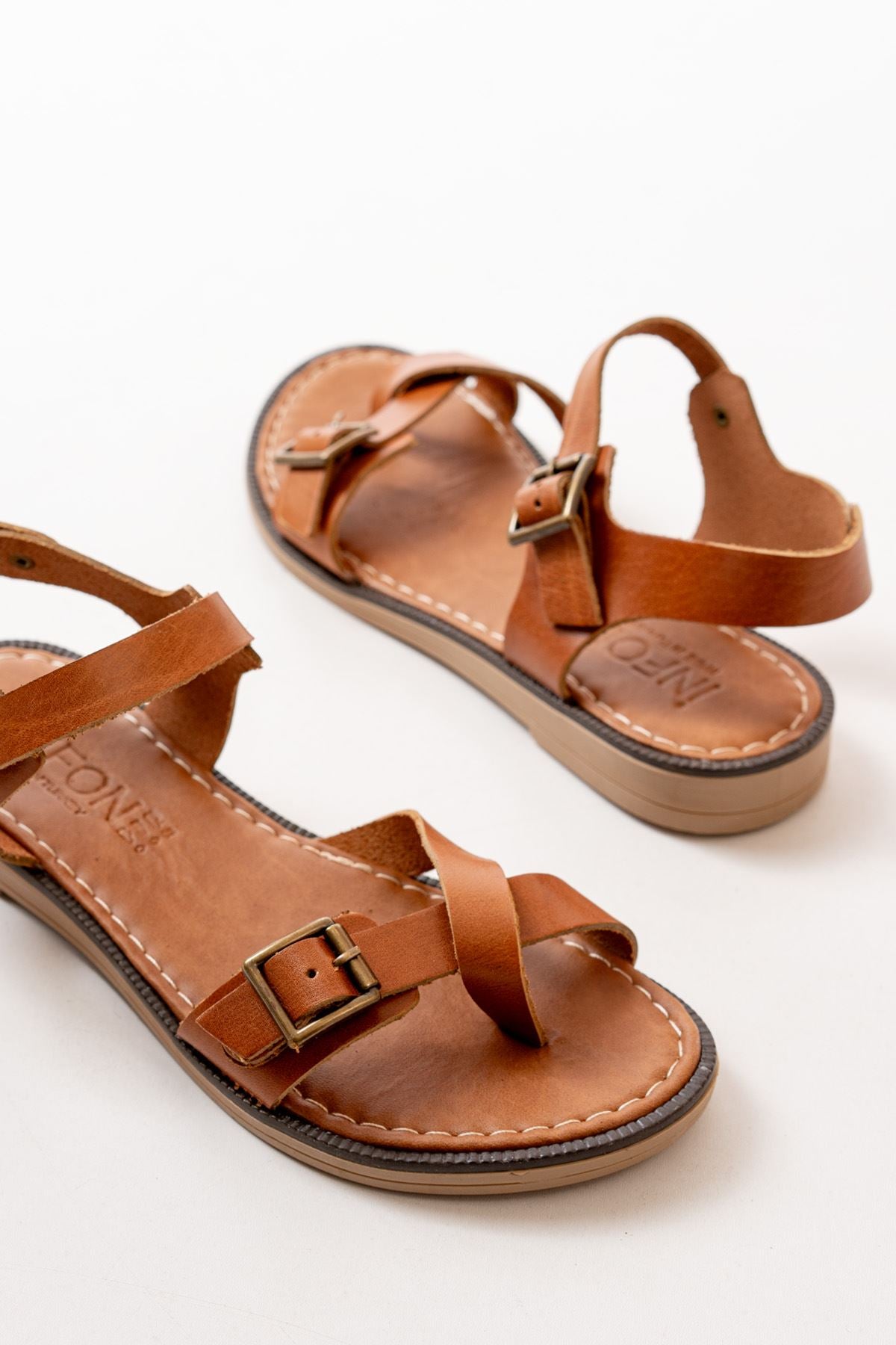 Ayakkabı Aşkı Taba Ortopedik Hakiki Deri Kadın Sandalet