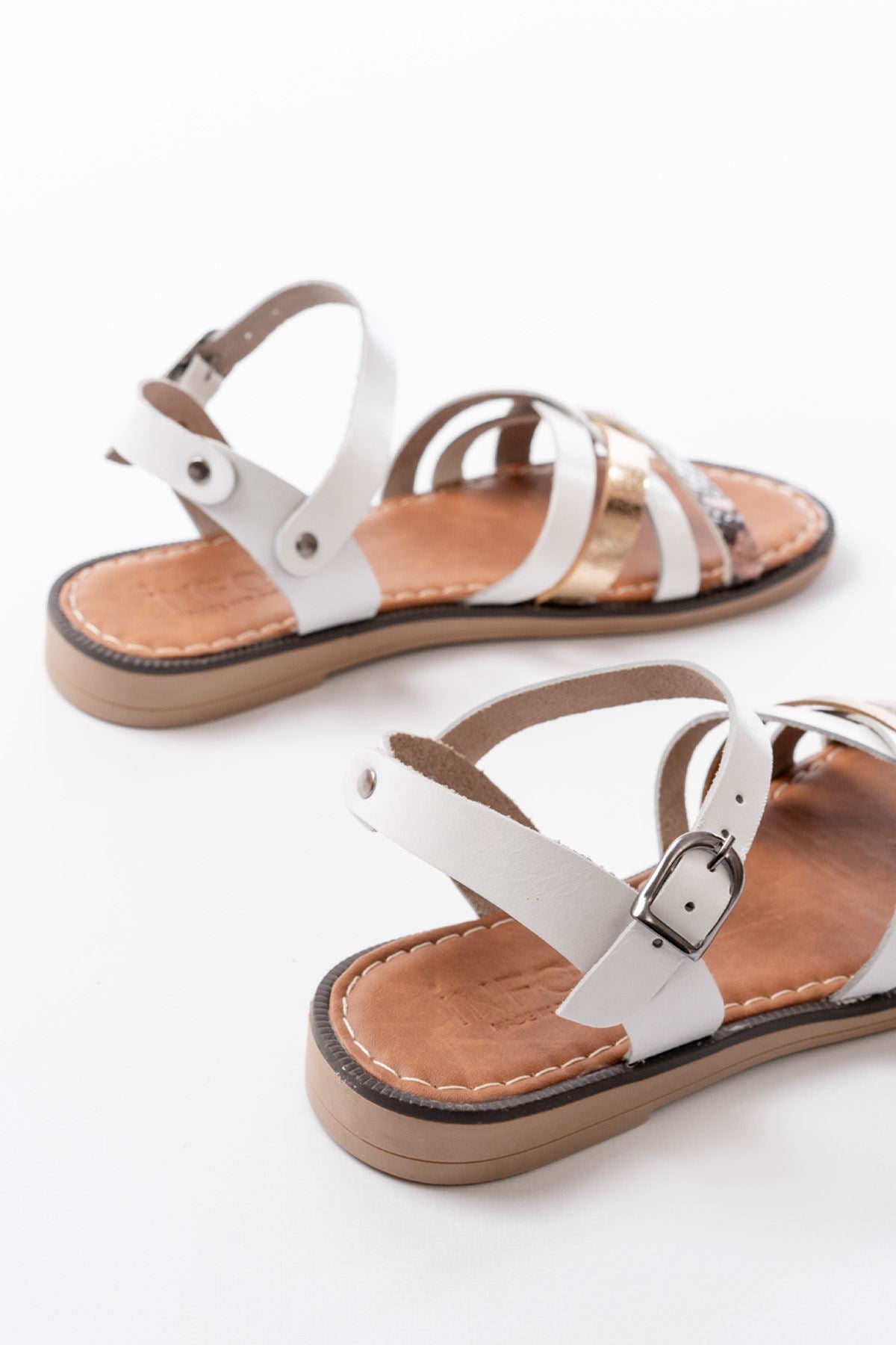 Ayakkabı Aşkı Beyaz Garni Hakiki Deri Ortopedik Taban Kadın Sandalet