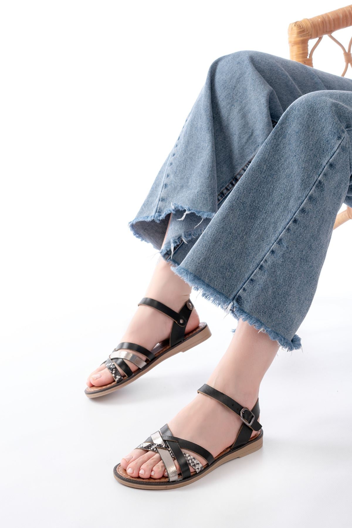 - Şıklık ve konforu bir arada sunan Ayakkabı Aşkı siyah sandalet, günlük kombinlerinize zarif bir dokunuş katar.
