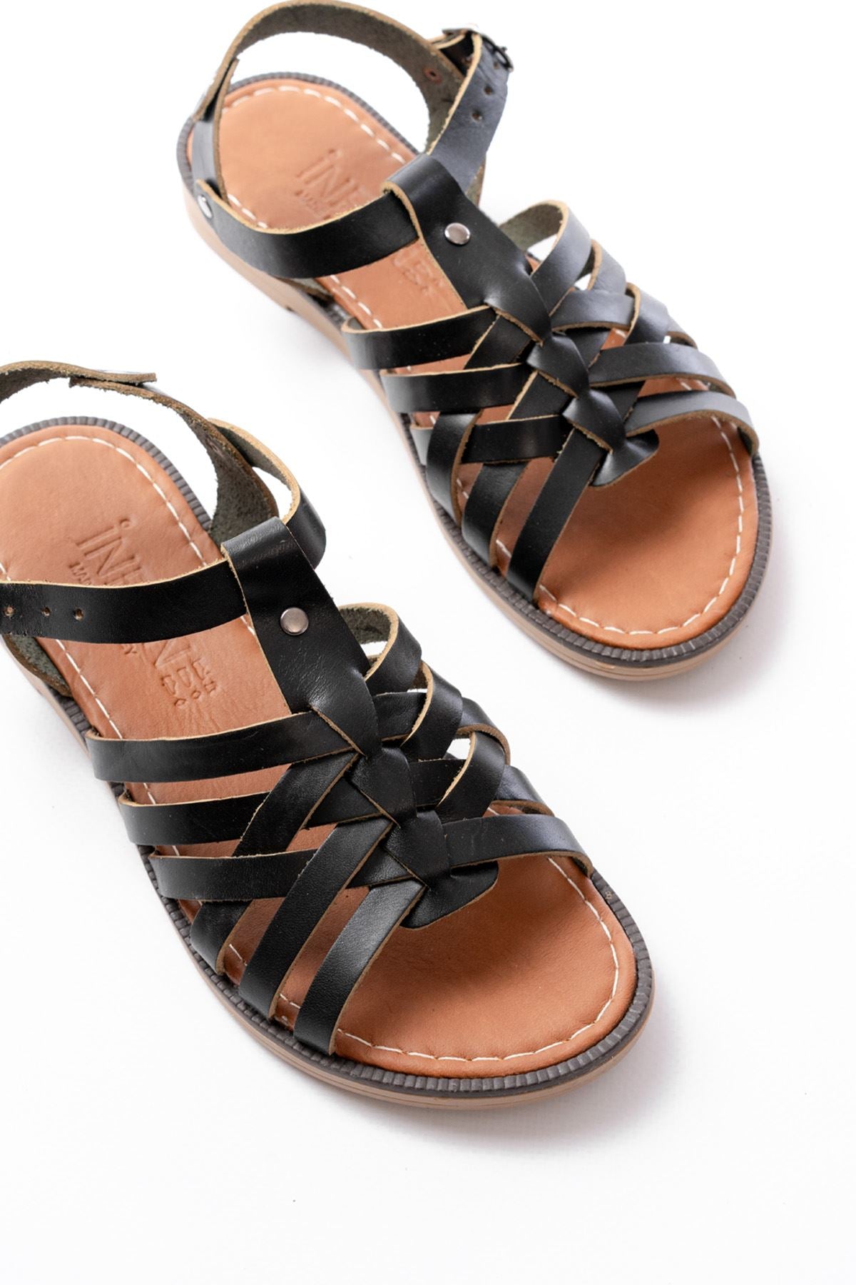 Ayakkabı Aşkı Siyah Hakiki Deri Ortopedik Taban Kadın Sandalet