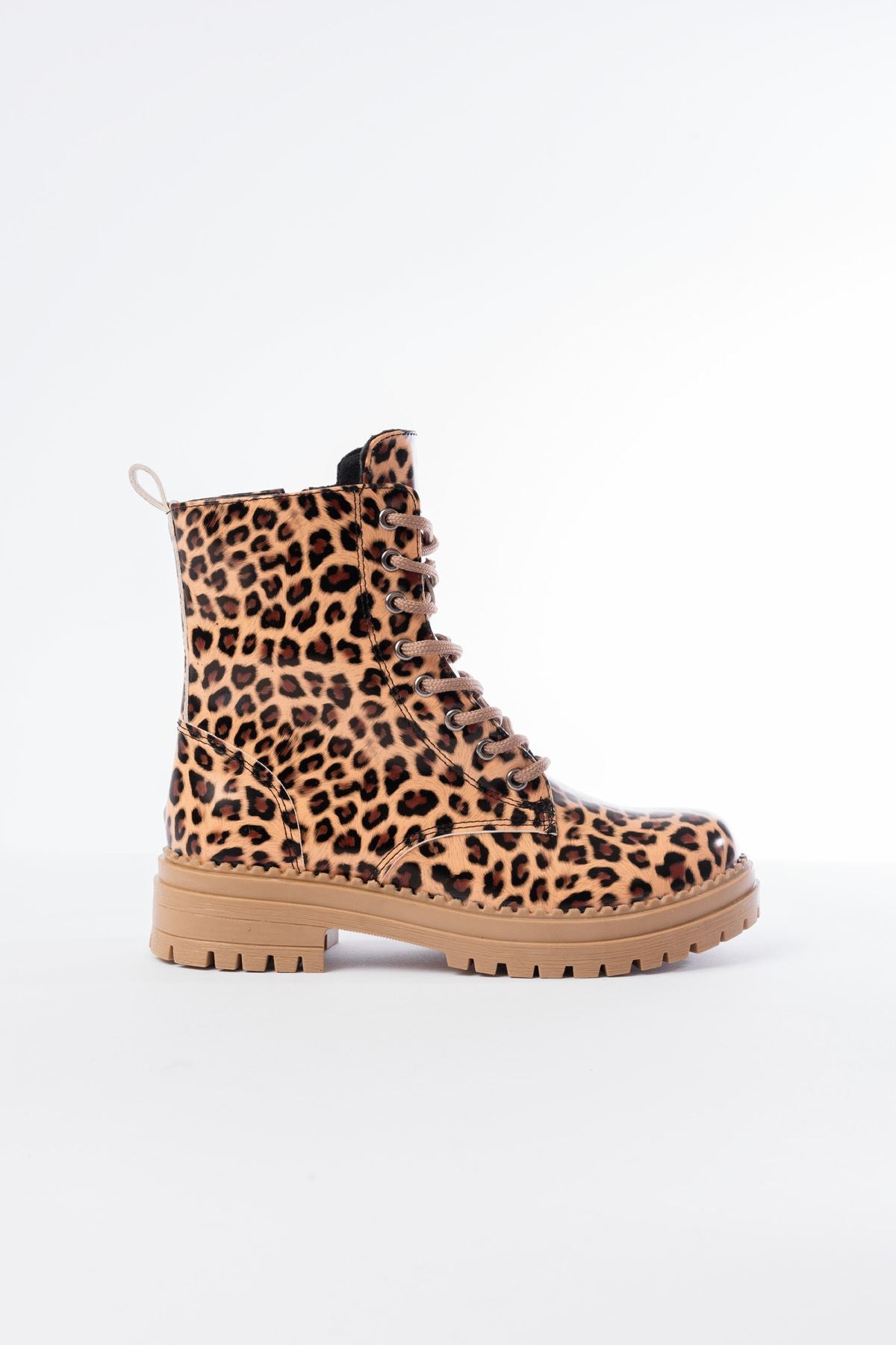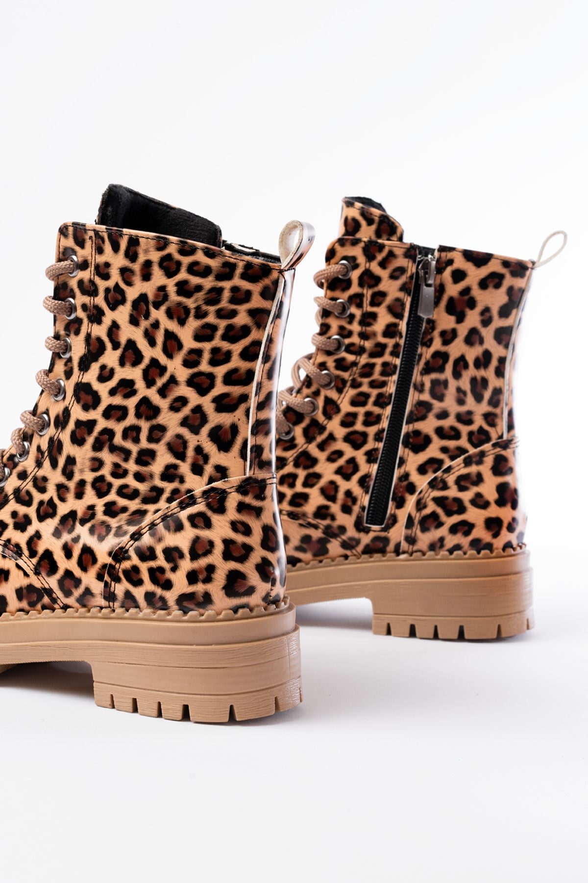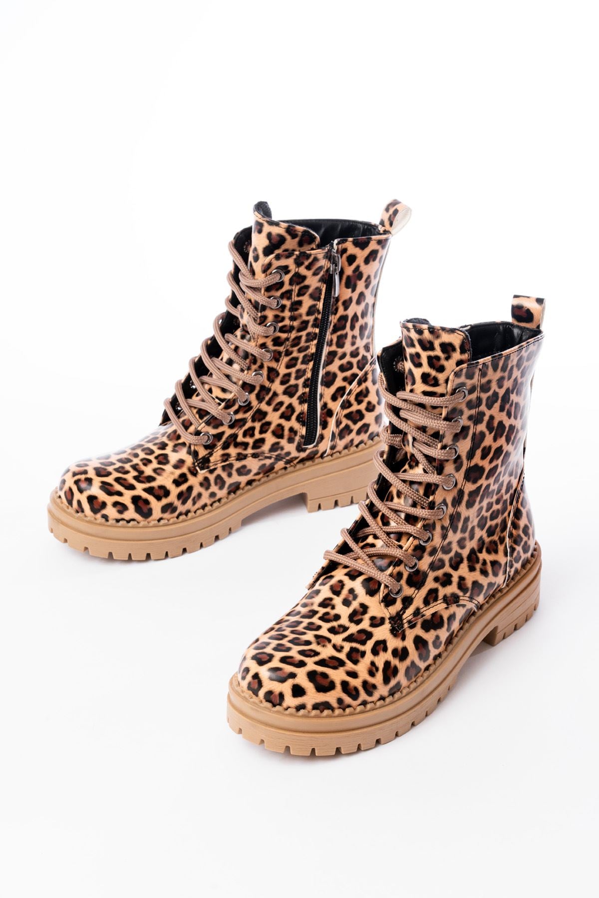 Ayakkabı Aşkı Parlak Leopar Bağcıklı Fermuarlı Günlük Kadın Bot