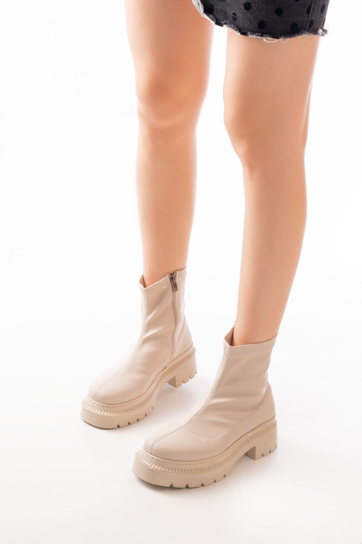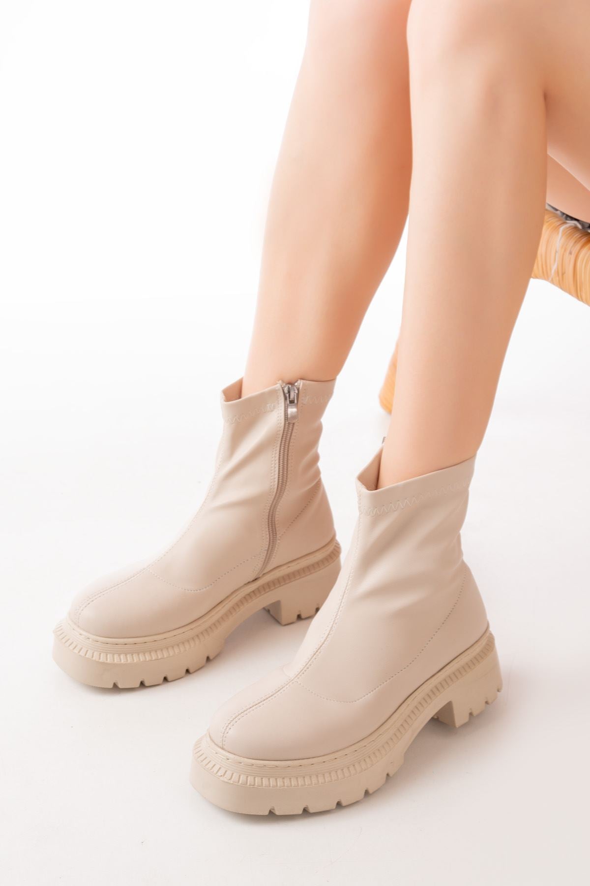 Ayakkabı Aşkı Bej Streç Fermuarlı Günlük Kadın Bot