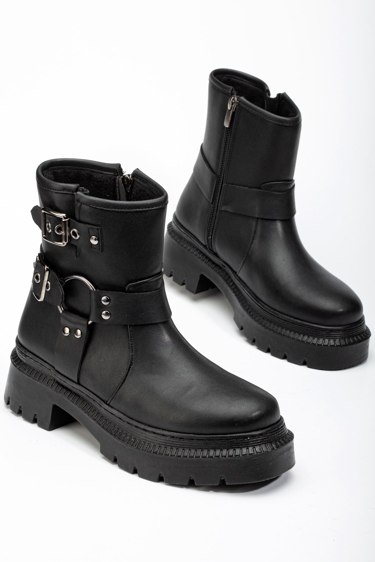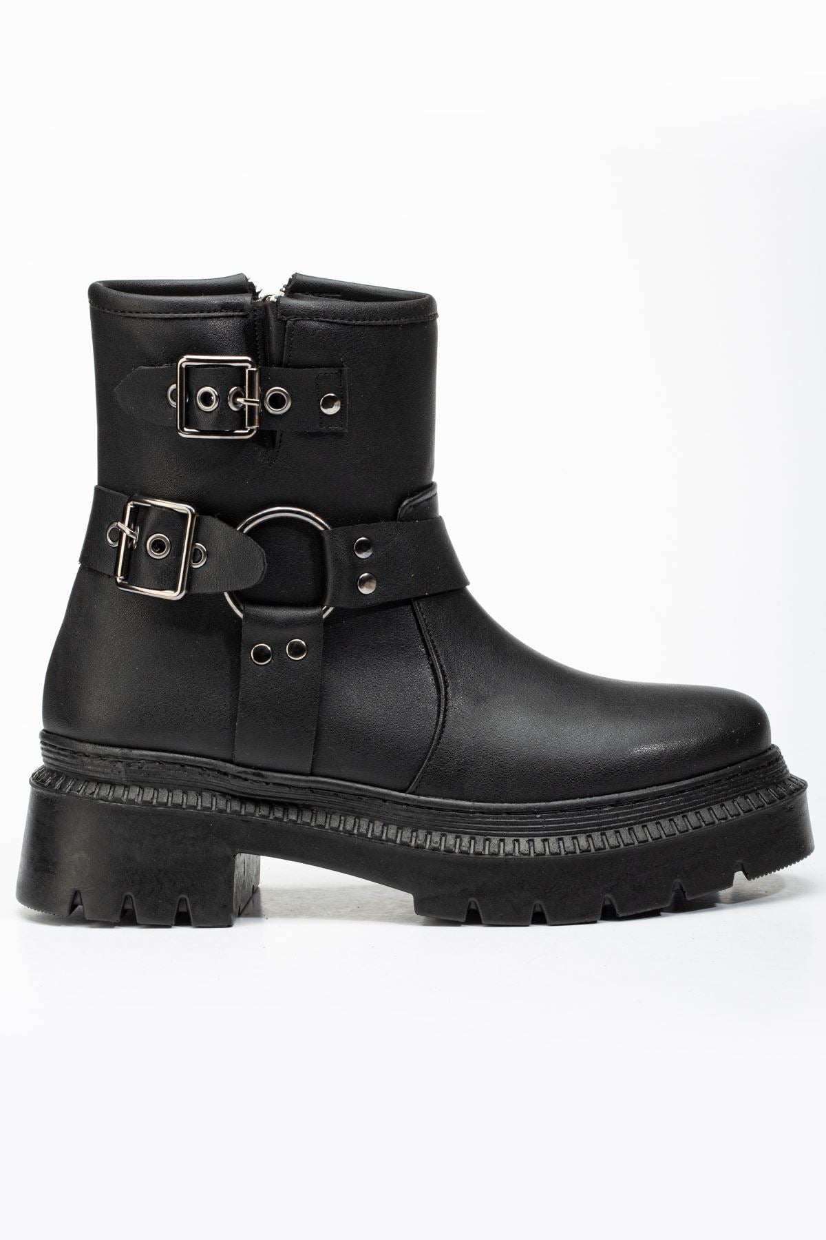Ayakkabı Aşkı Siyah Toka Aksesuarlı Fermuarlı Günlük Kadın Bot