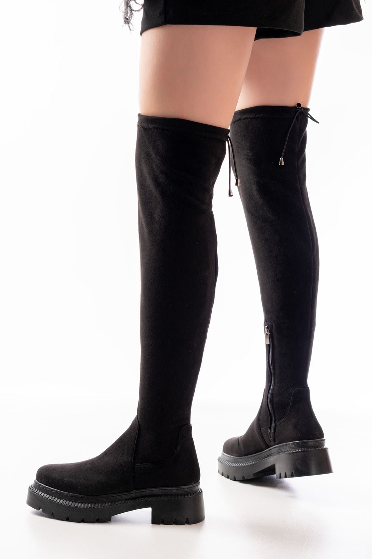 Ayakkabı Aşkı Siyah Süet Streç Diz Üstü Fermuarlı Günlük Kadın Çizme