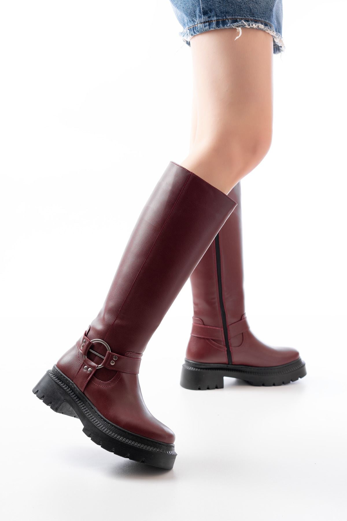 Ayakkabı Aşkı Bordo Fermuarlı Günlük Kadın Çizme