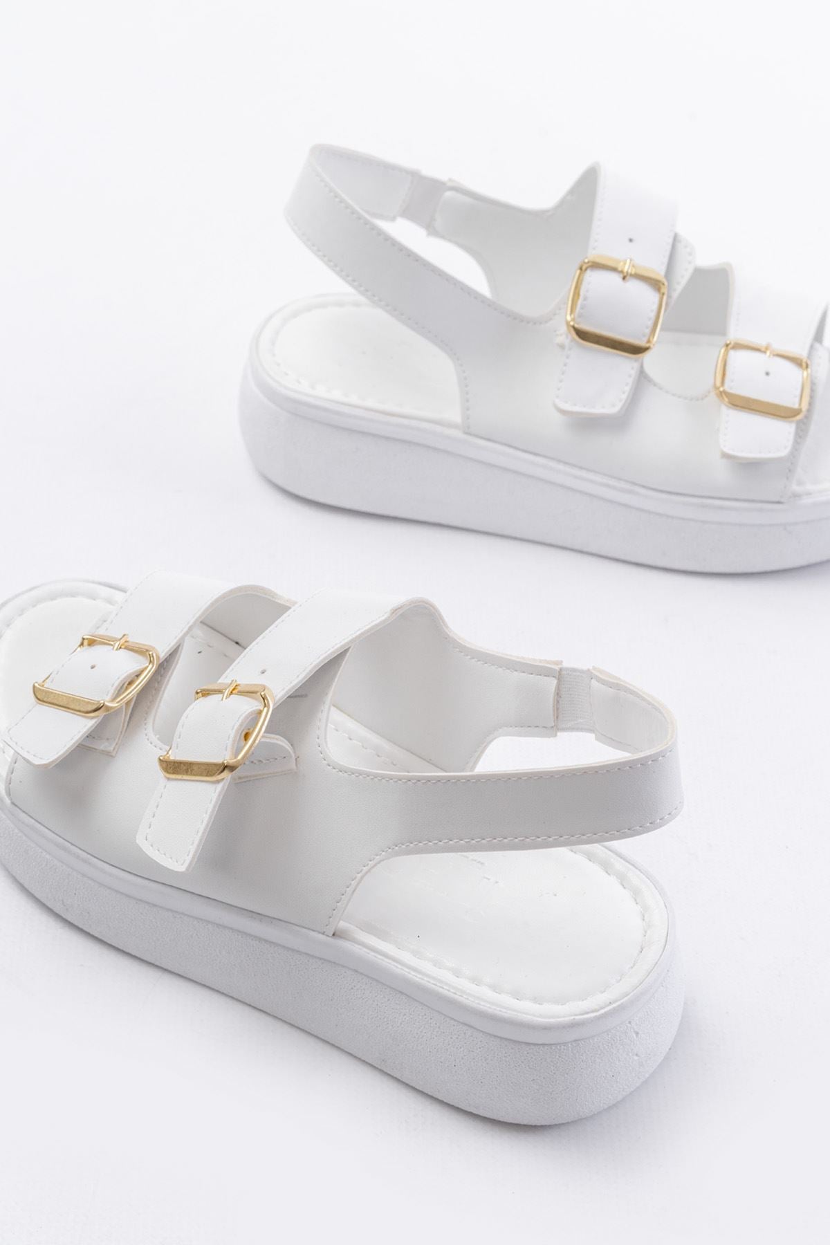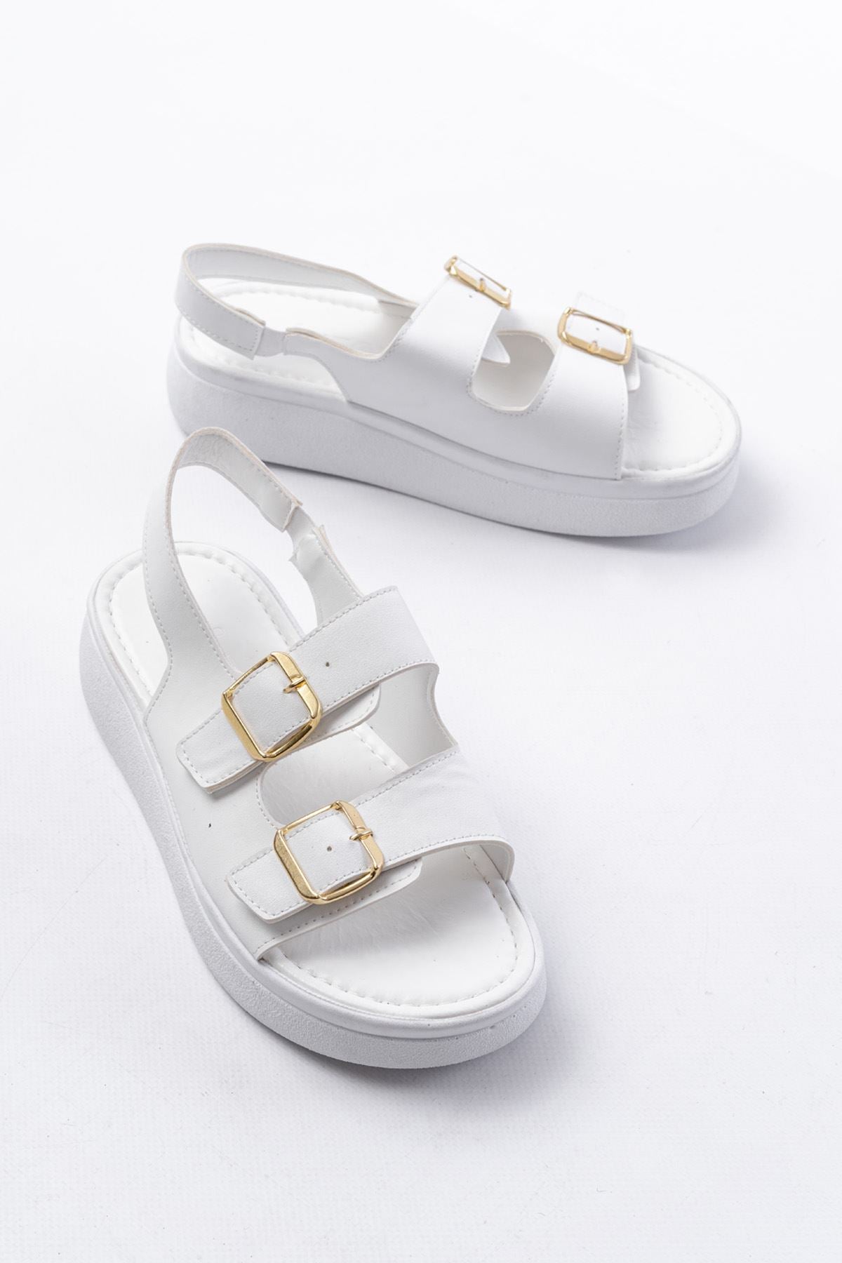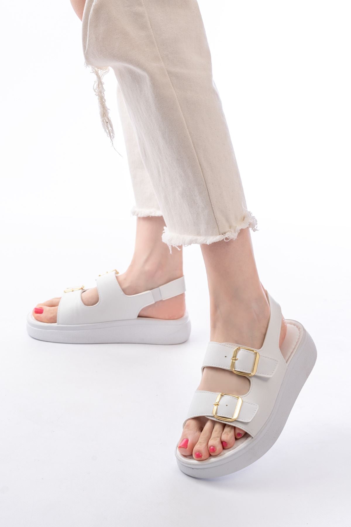 Ayakkabı Aşkı Beyaz Günlük Dolgu Topuk Toka Aksesuarlı Kadın Sandalet