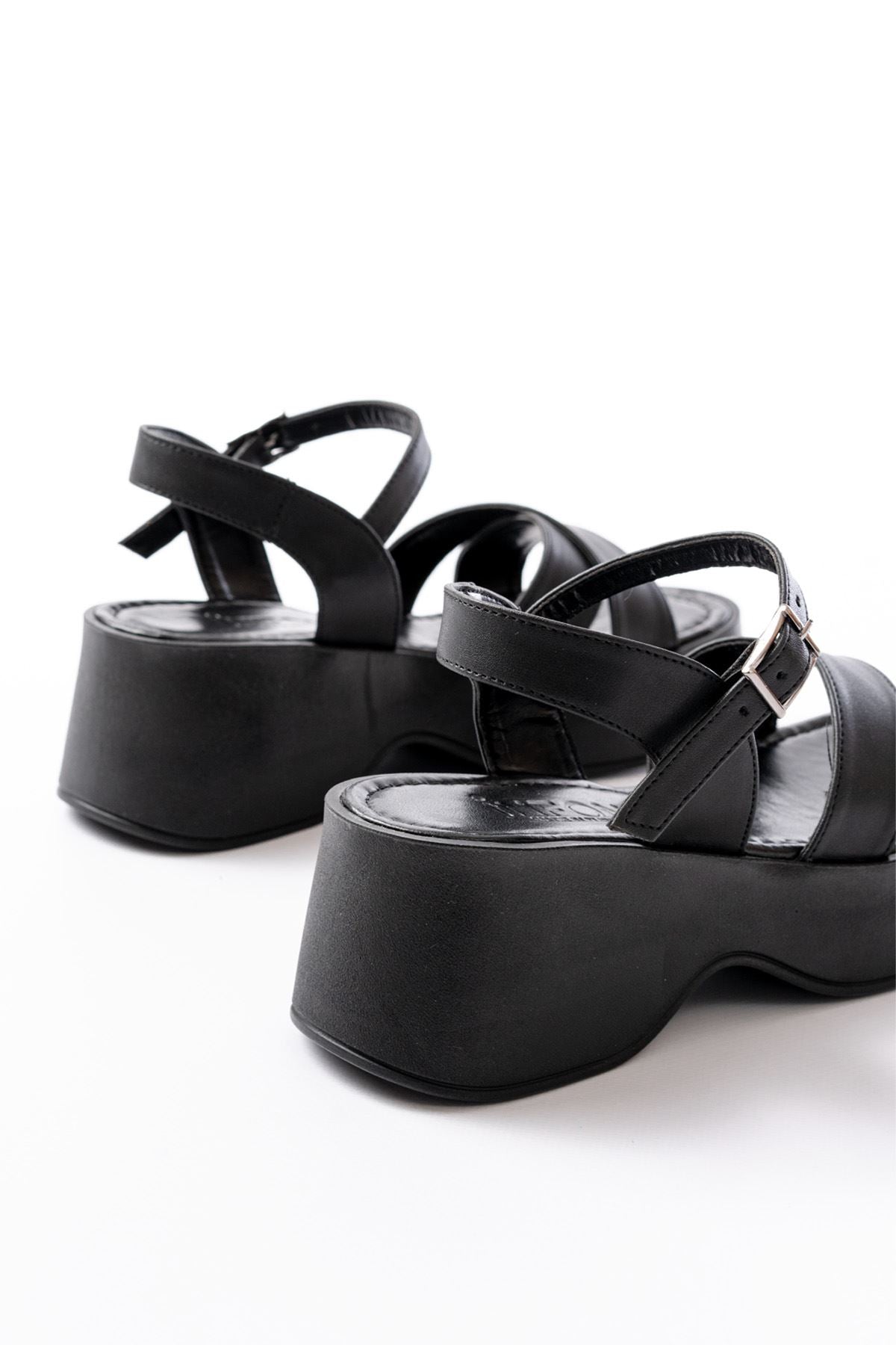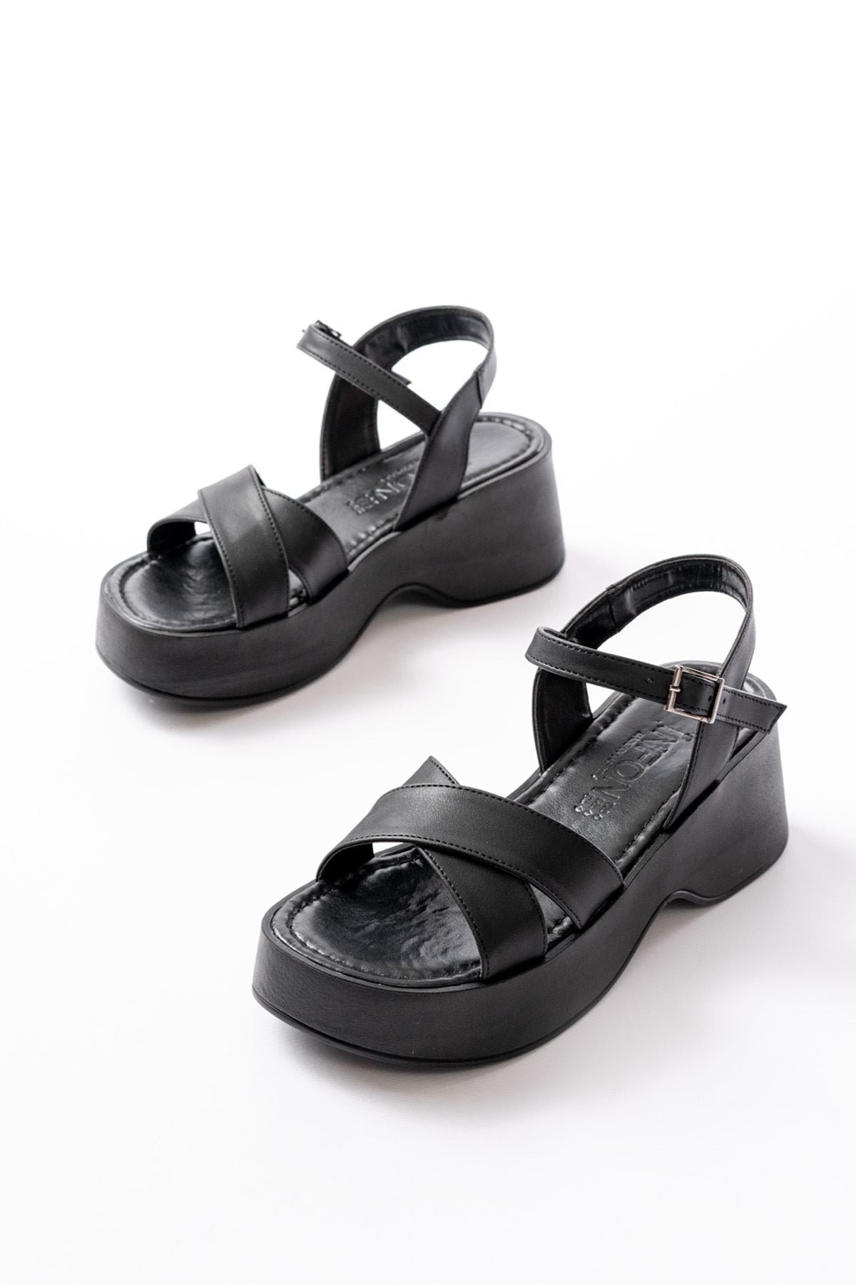 Ayakkabı Aşkı Siyah Günlük Çapraz Dolgu Topuk Kadın Sandalet