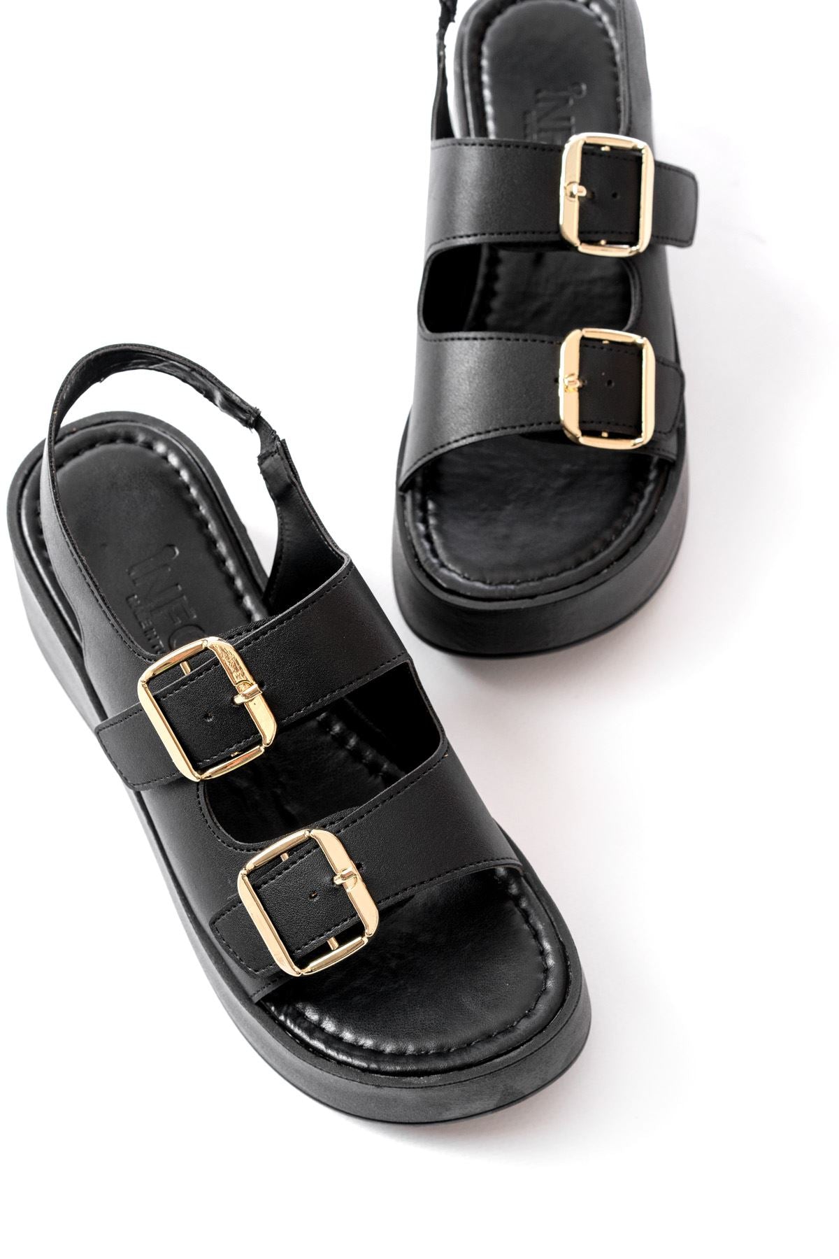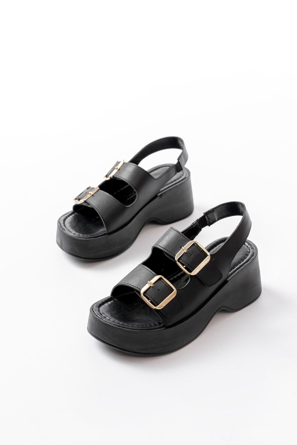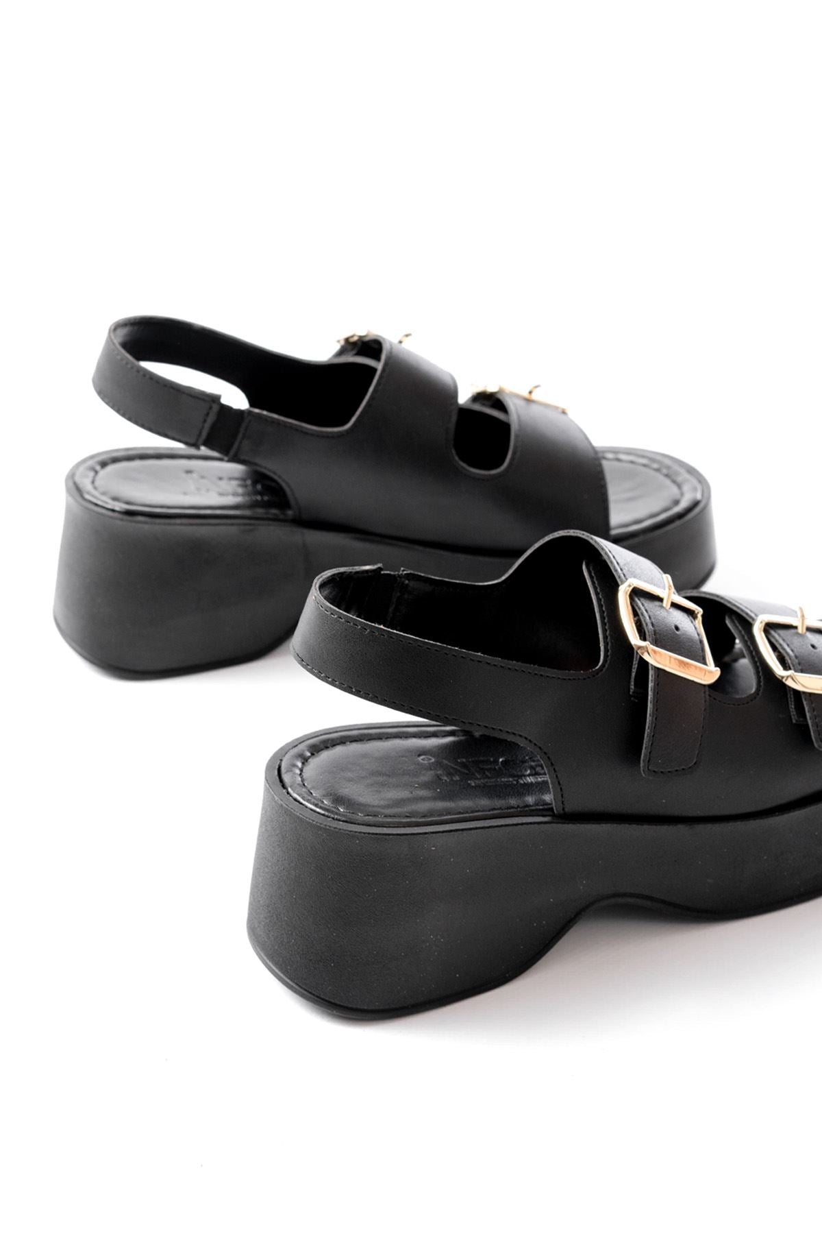 Ayakkabı Aşkı Siyah Tokalı Günlük Dolgu Topuk Kadın Sandalet