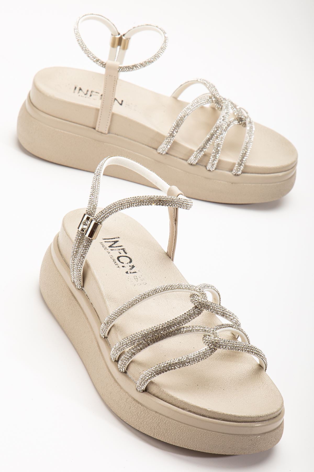 Ayakkabı Aşkı Bej Dolgu Topuk Kadın Sandalet