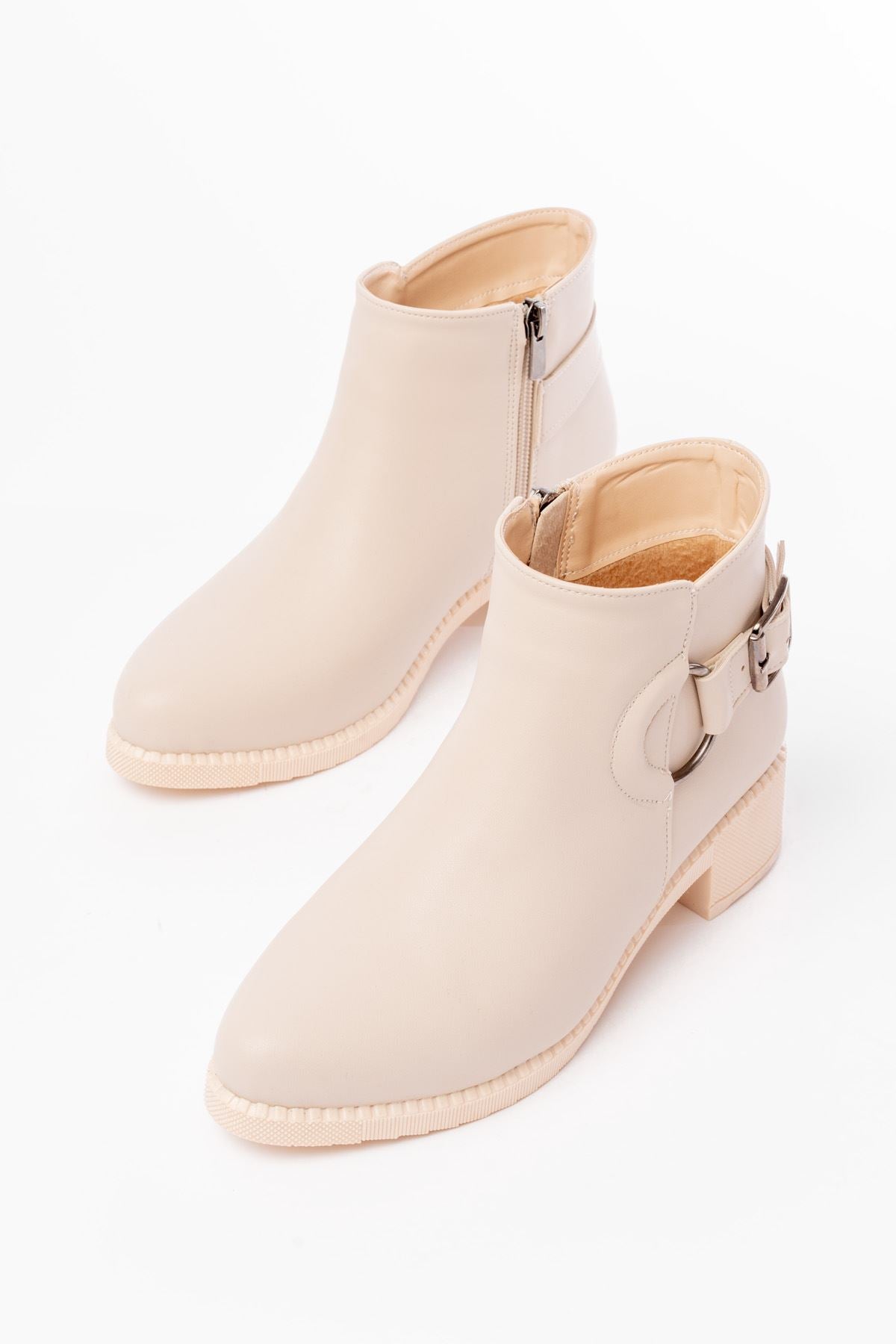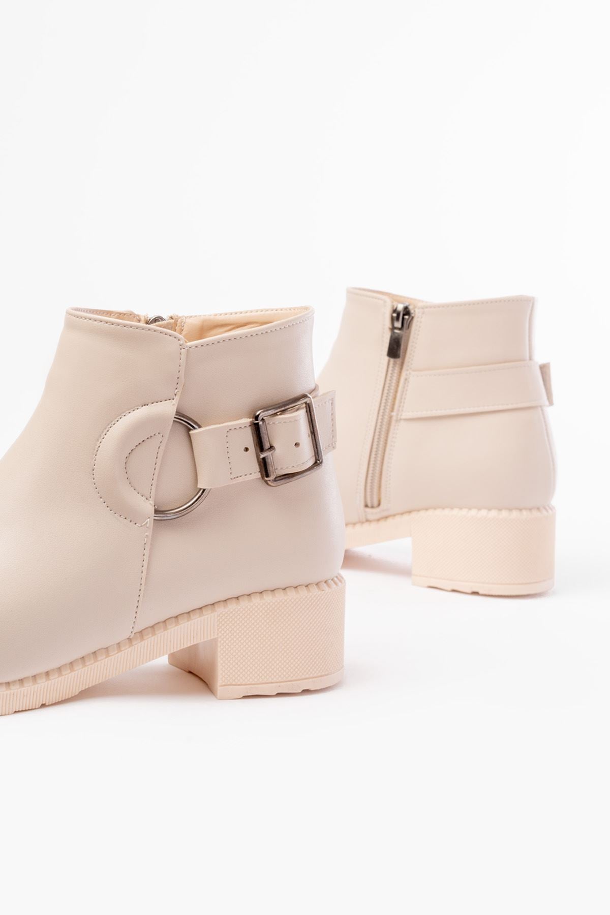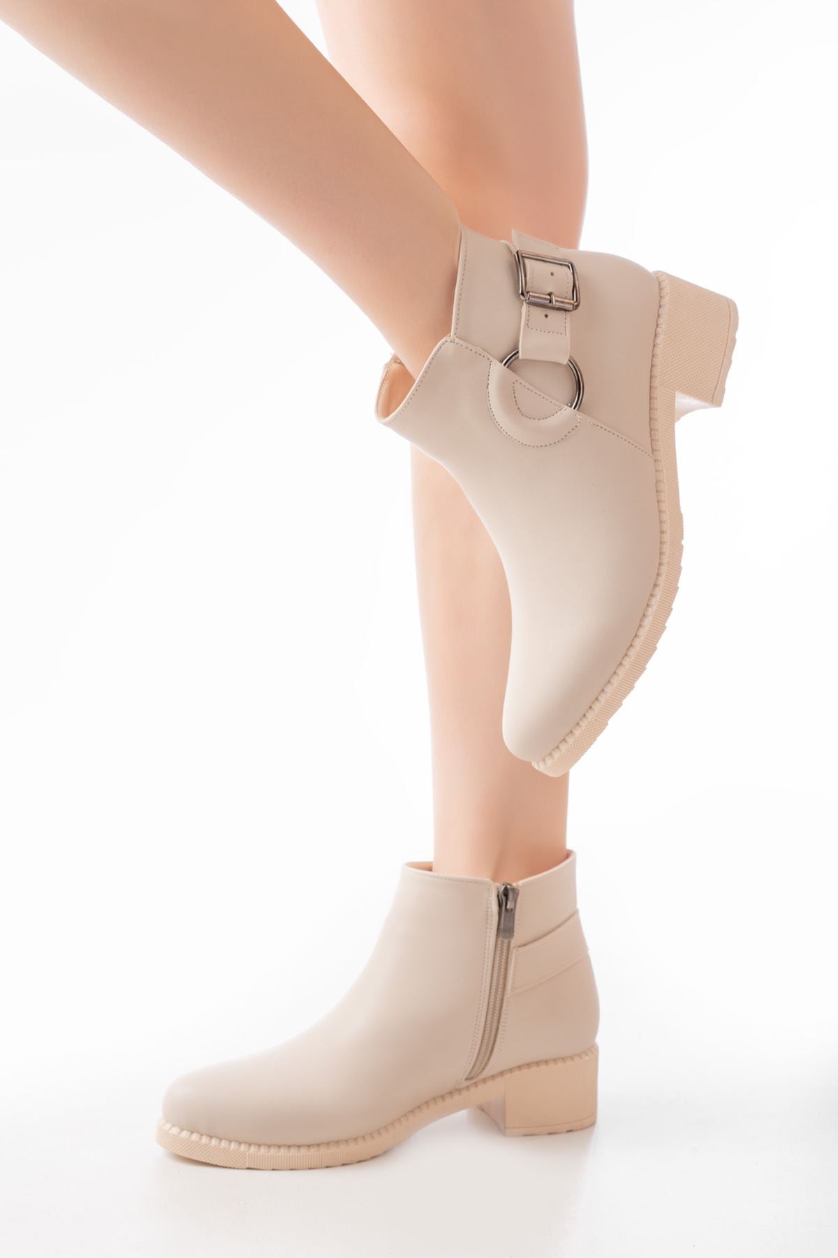 Ayakkabı Aşkı Bej Toka Aksesuarlı Fermuarlı Günlük Kadın Bot