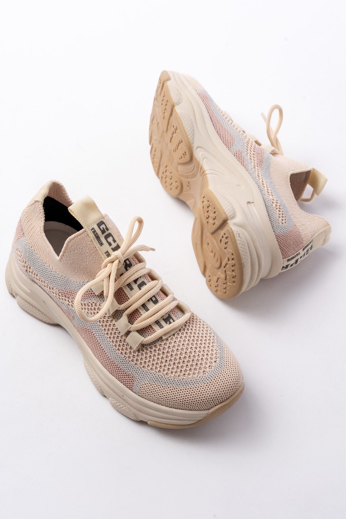 Ayakkabı Aşkı Bej Bağcıklı Fileli Günlük Spor Ayakkabı
