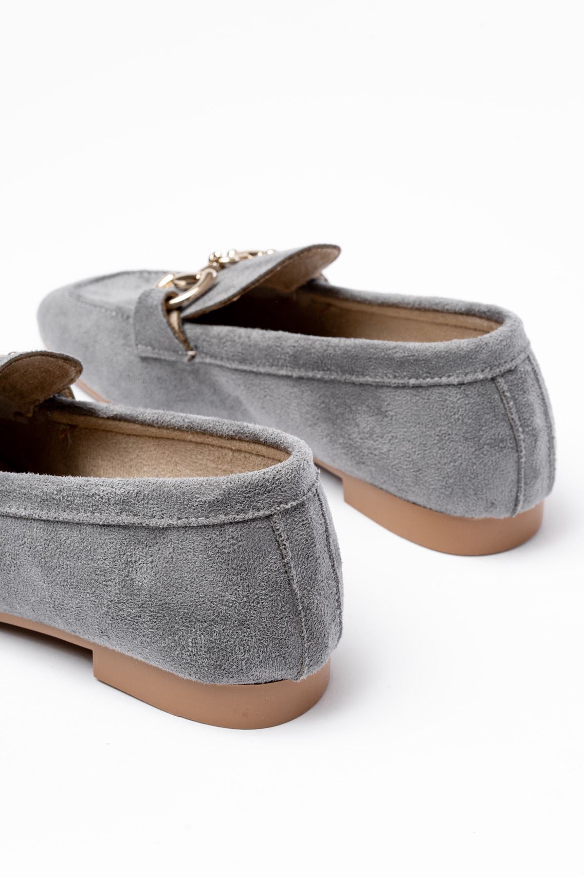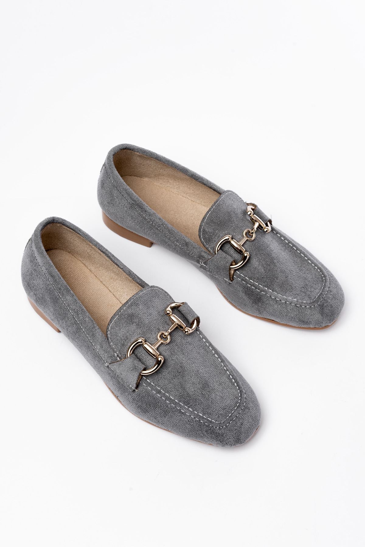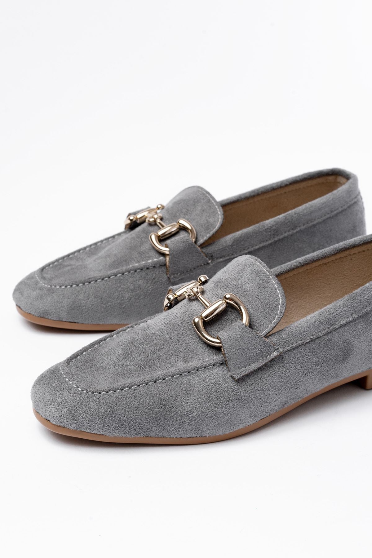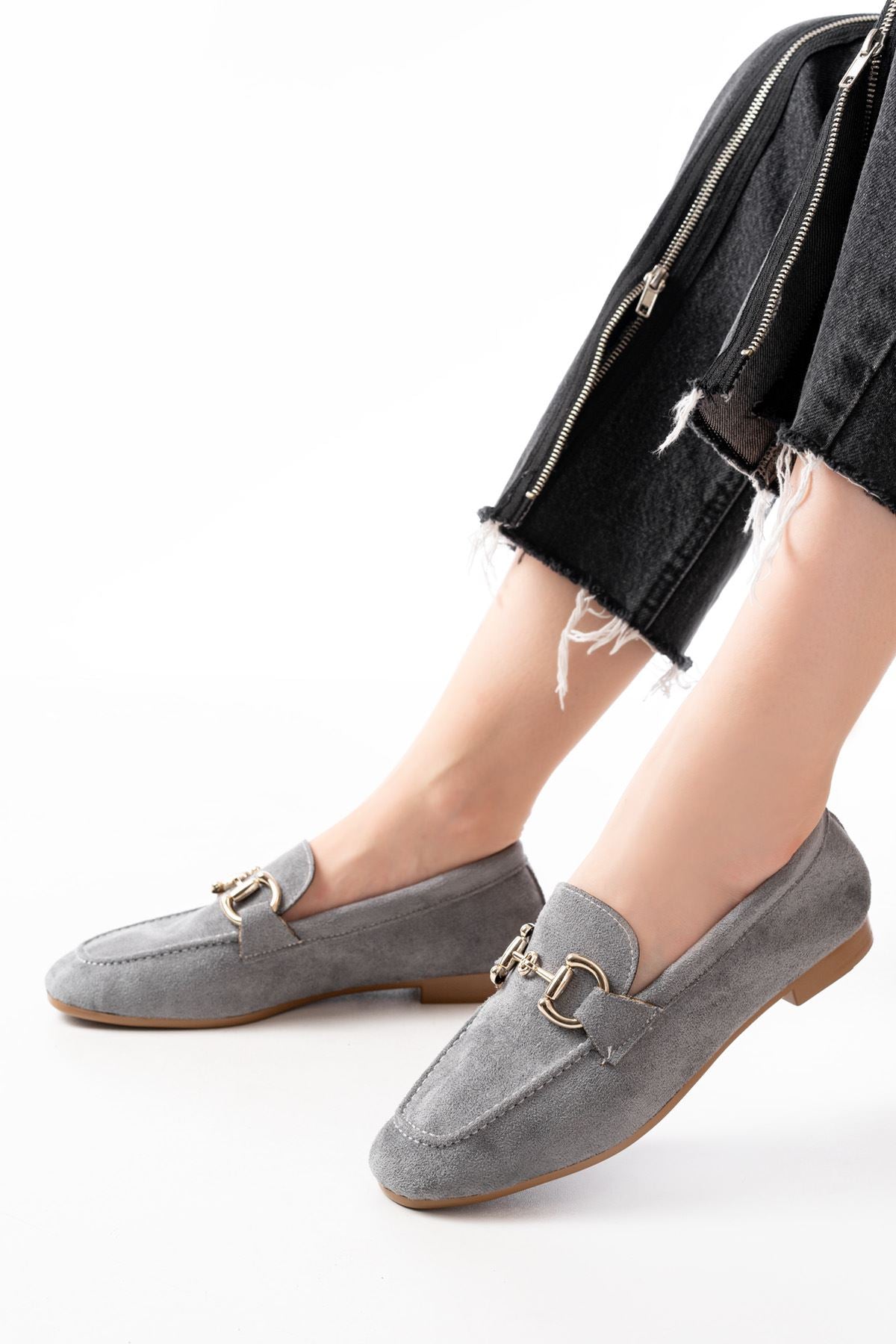 Ayakkabı Aşkı 303 Gri Süet Toka Aksesuarlı Günlük Kadın Babet
