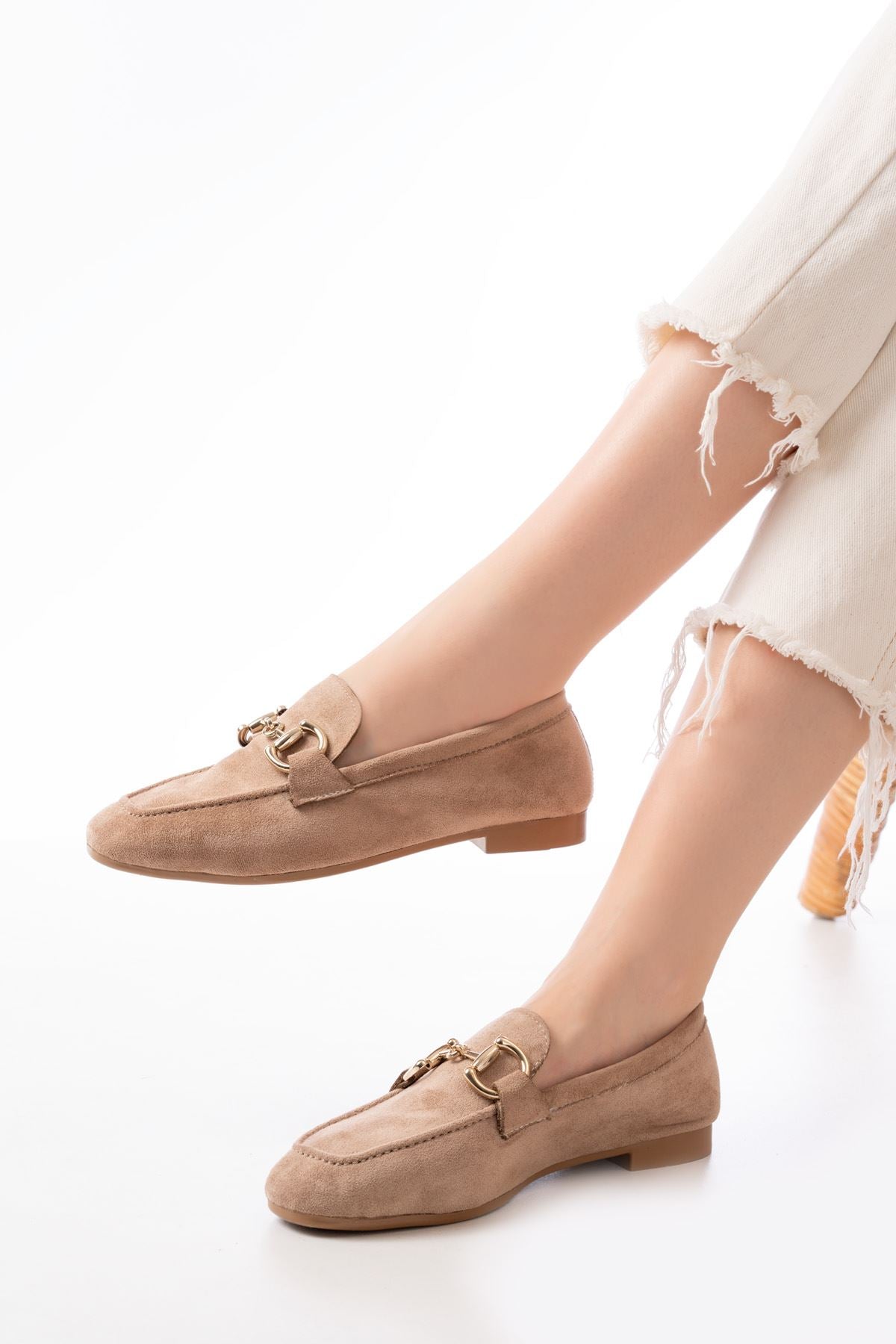 Ayakkabı Aşkı 303 Taba Süet Toka Aksesuarlı Günlük Kadın Babet